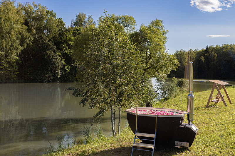 Инфраструктура: чан, зона отдыха, обливное ведро, душБаня на дровах с панорамным видом на реку, купель большая терраса с навесом, пирс с 2 лежаками, туалет и душ, комната отдыха, чайник, фен, халаты, косметика и мангал, чан за дополнительную плату.