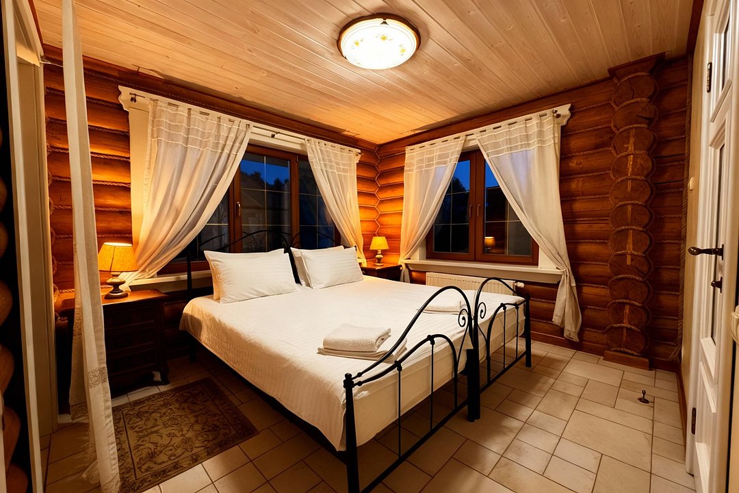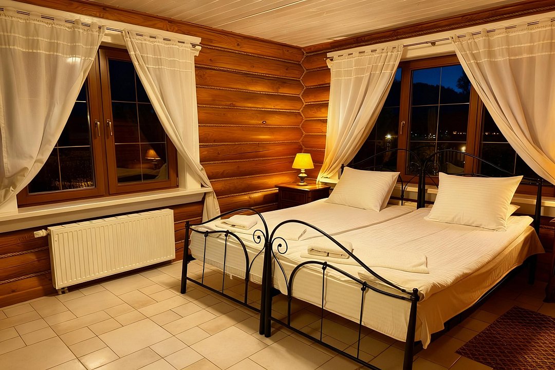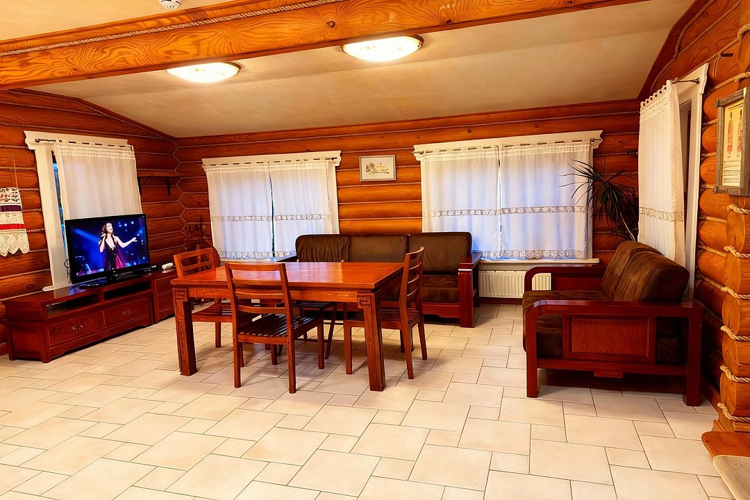 К услугам гостей работают ресторан, баня с купелью, музеи, картинная галерея, мини-зоопарк, детская площадка, теннисный корт и поле для мини-гольфа. Крытый подогреваемый бассейн длиной 18 метров с джакузи, хаммамом и сауной закрывается под коттедж.