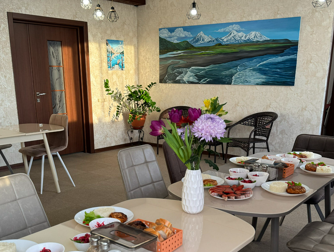 «АмКам» славится своим гостеприимством: хозяева помогут подобрать индивидуальные туры и экскурсии по Камчатке, организуют насыщенные маршруты с учётом пожеланий и погодных условий. Гостевой дом идеально подойдет как для семейного отдыха, так и для компаний друзей или индивидуальных путешественников, желающих открыть Камчатку в уютной и теплой атмосфере.