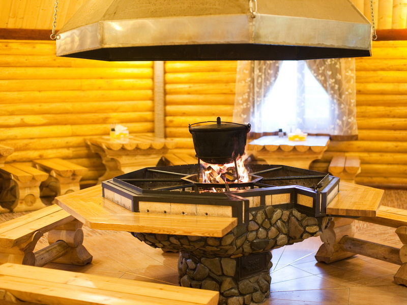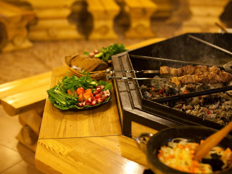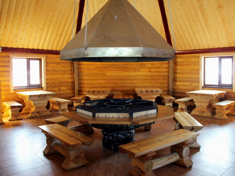 В центре кафе размещен огромный мангал, на котором Вам приготовят шашлык, мясо на камнях, блюда из свежей рыбы, плов и шурпу из оленины.Здесь Вы можете вкусно поужинать, спеть караоке, отметить торжество: день рождения, свадьбу, корпоратив, юбилей, новый год и т.д.