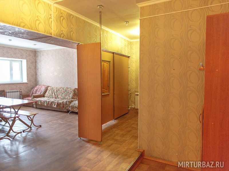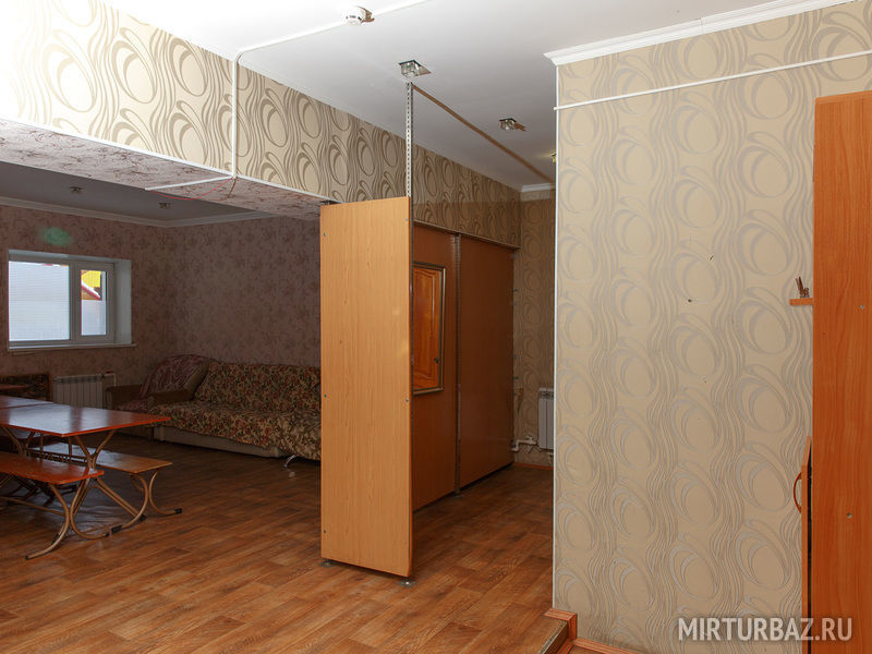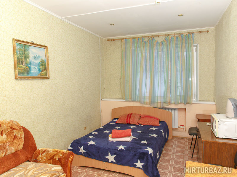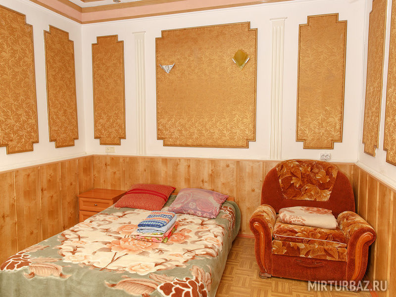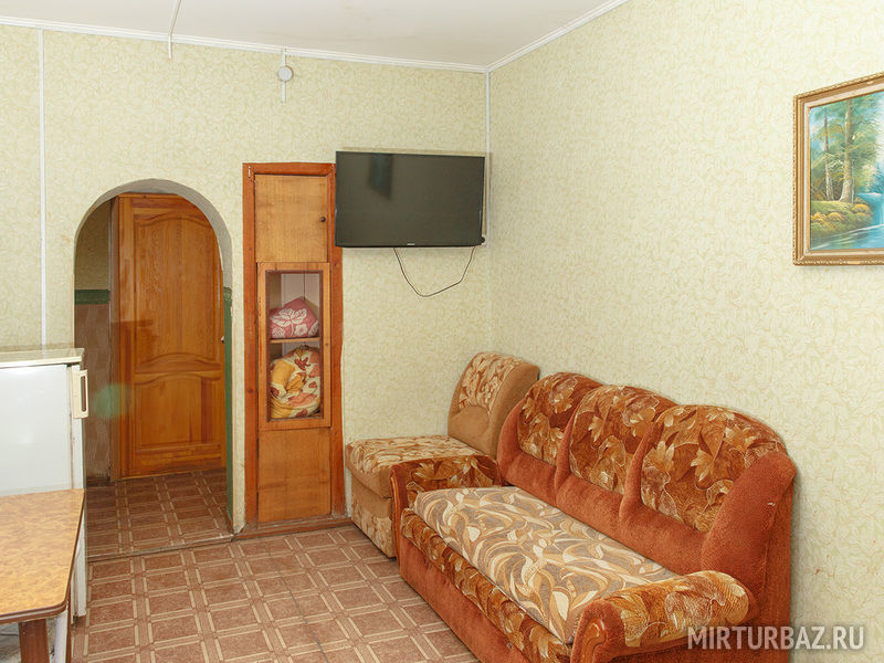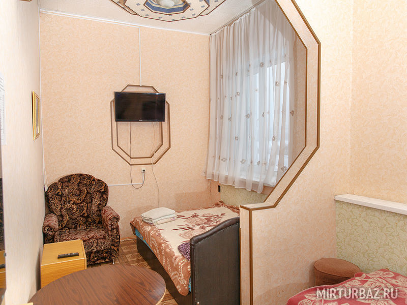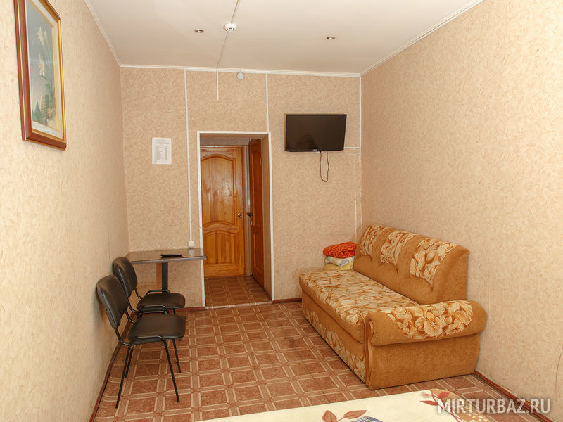 В номере: двуспальная кровать и диван (либо односпальная кровать), кресло ,микроволновка, электрический чайник, телевизор. Номера 6 и 7 без санузла (общий для номеров санузел на этаже).