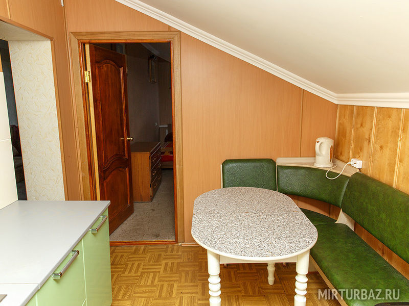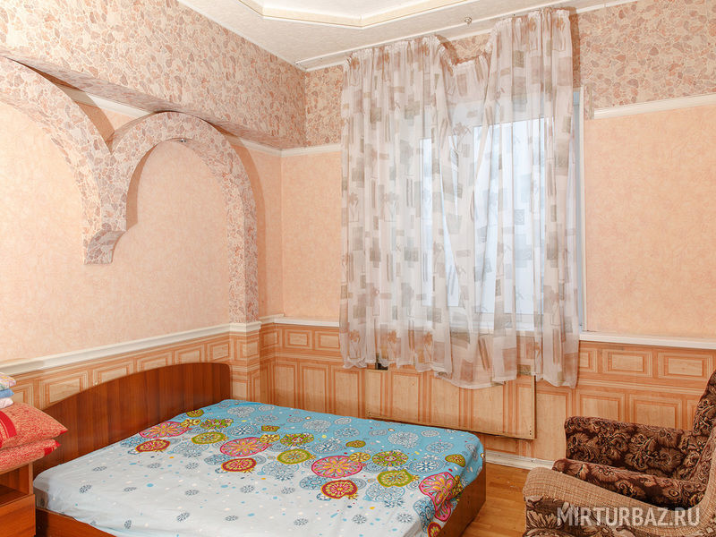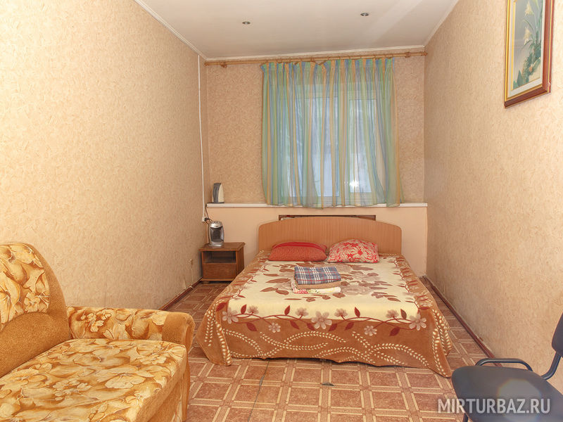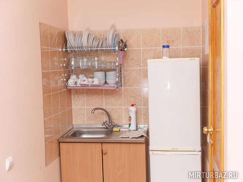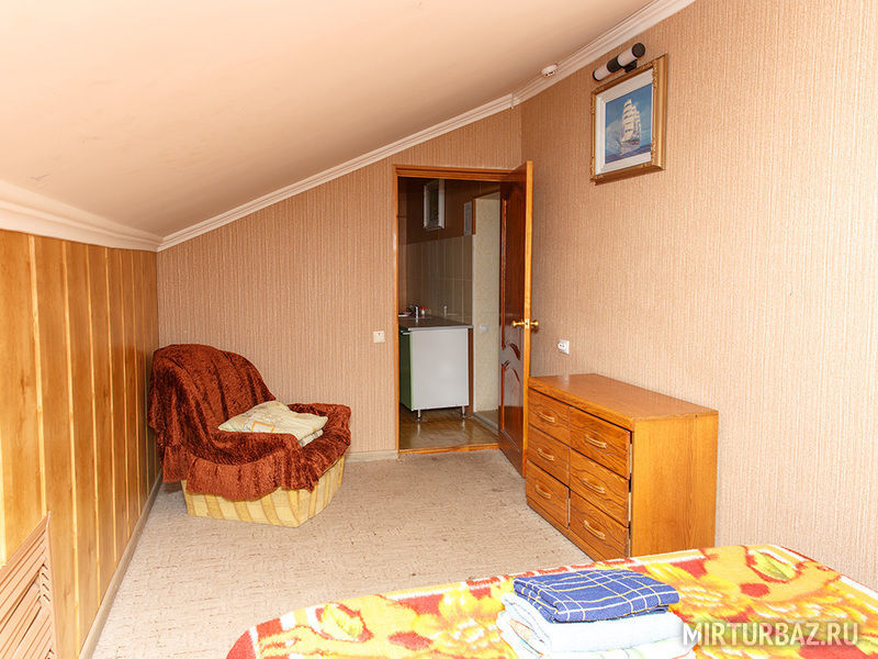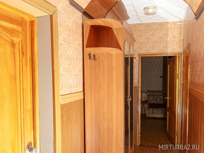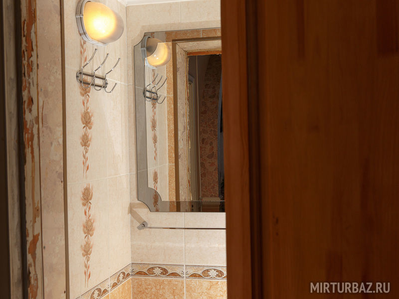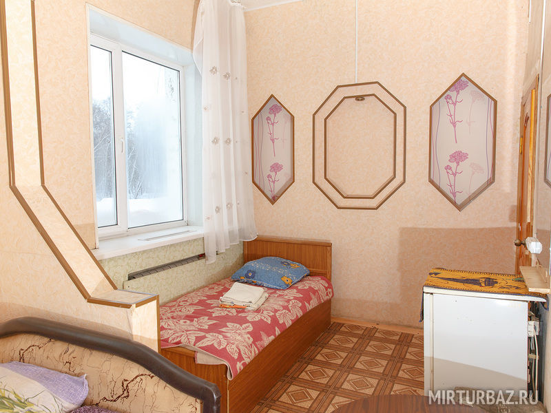 В номере: двуспальная кровать и диван (либо односпальная кровать), кресло ,микроволновка, электрический чайник, телевизор. Номера 6 и 7 без санузла (общий для номеров санузел на этаже).