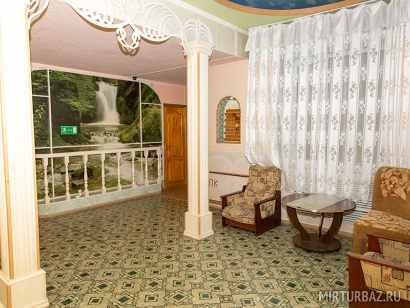 11 номеров, номера представлены категориями: 2-х местные и люксы. Во всех номерах есть душ и санузел. В 2-х местных номерах душ и санузел расположены напротив номеров на этаже. Два бассейна с термальной водой: взрослый и детский, баня с банкетным залом и бассейном, бильярд, теннис, кафе-бар на 70 мест с вкусной кухней и разнообразным меню, для развлечения караоке и дискотека.