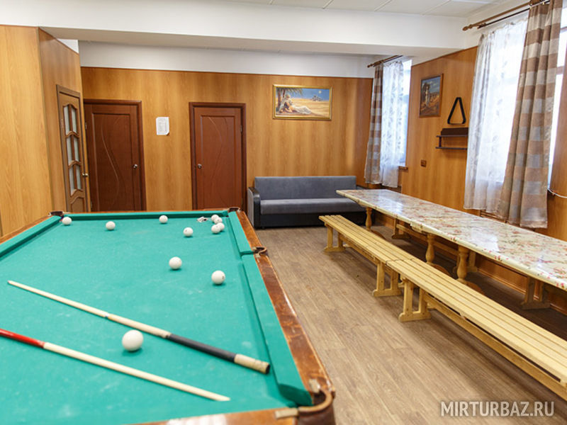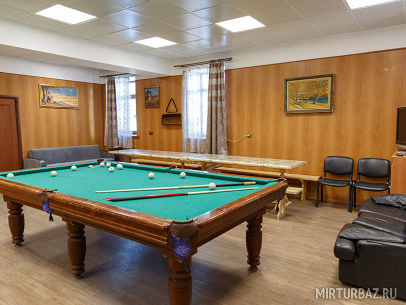 На 2 этаже — 2 комнаты отдыха, бильярд, санузел, раздевалка, телевизор, муз.центр, эл.чайник.