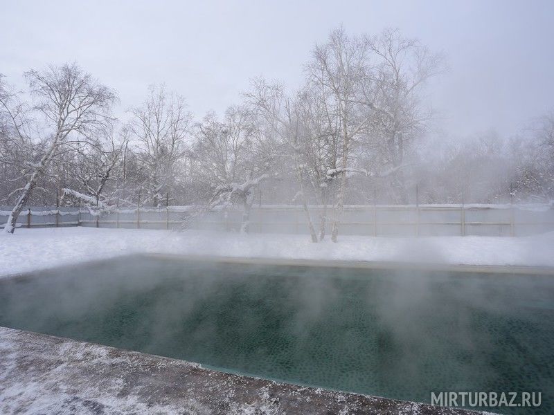 Путешествие с семьейЗамечательная зима!Замечательное место. По прибытию, администратор переоформил два номера основного корпуса на шестиместный гостевой дом. Дом новый, чистый оборудованный всем необходимым для быта и отдыха с индивидуальной мангальной зоной. Три общих бассейна с термальной водой практически всегда пустовали, поэтому мы были королями бассейнов. Кстати бассейны чистят раз в неделю с полной сменой воды. Стоимость проживания в доме 13 тысяч за сутки. Принимают карты.