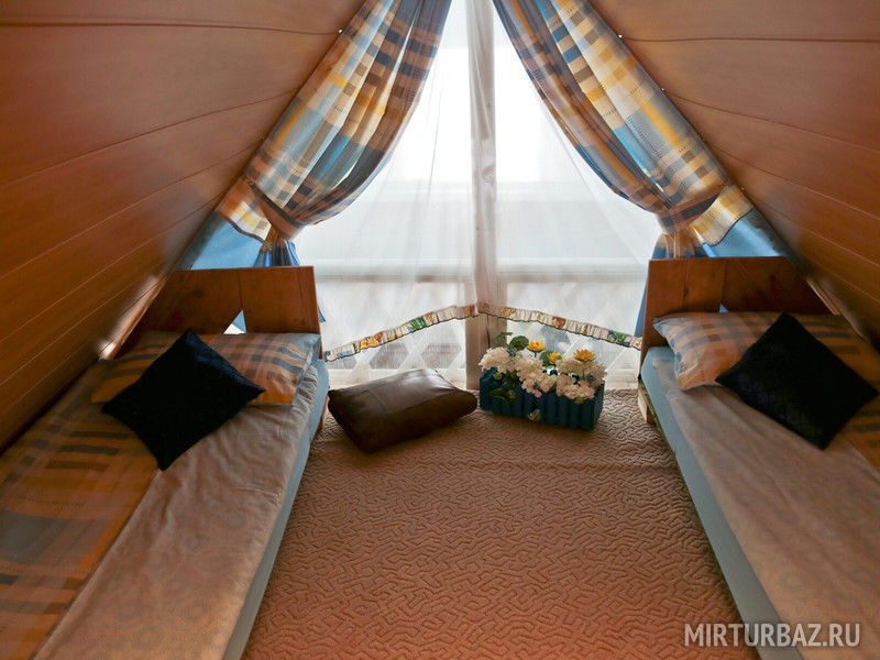 На верхнем этаже Чайнатауна расположены 2 спальни. Спальня маленькая с односпальными кроватями, которые можно сдвинуть, подростковый диван.