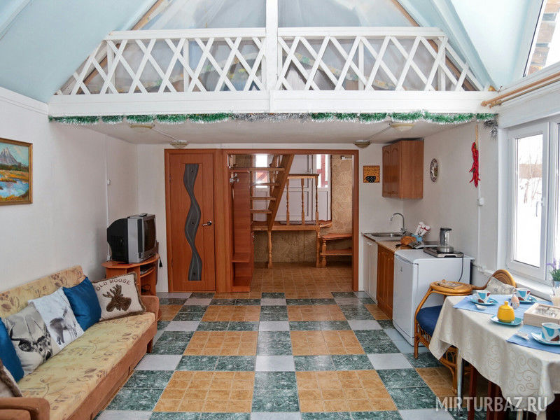 Отдых с друзьямиДостоинстваОчень приятный домик, в котором все есть для комфортного проживания. Жили вчетвером и всем хватило пространства. Понравился термальный бассейн и вход в него прямо с крыльца. Это просто спасение после долгих пеших экскурсий. Также хочется отметить радушие хозяев, их готовность помочь и пойти навстречу при возникновении проблем. В общем, одни приятные впечатления. НедостаткиНеобходимо понимать, что данное жилье находится на удалении от Елизово и ППК, так что, хотя такси сюда и ездит, заказывать транспорт необходимо заранее, так как в нужный момент свободных (и готовых сюда ехать) машин может не оказаться. Мы понимали, куда едем, и хотели пожить в тихом месте, так что проблем с этим у нас не возникло, но нужно иметь это в виду.