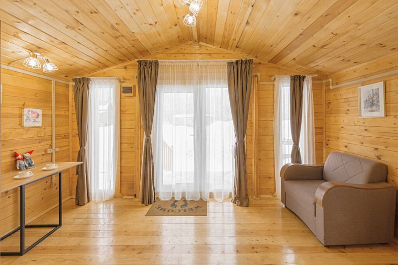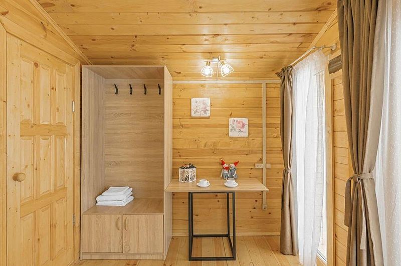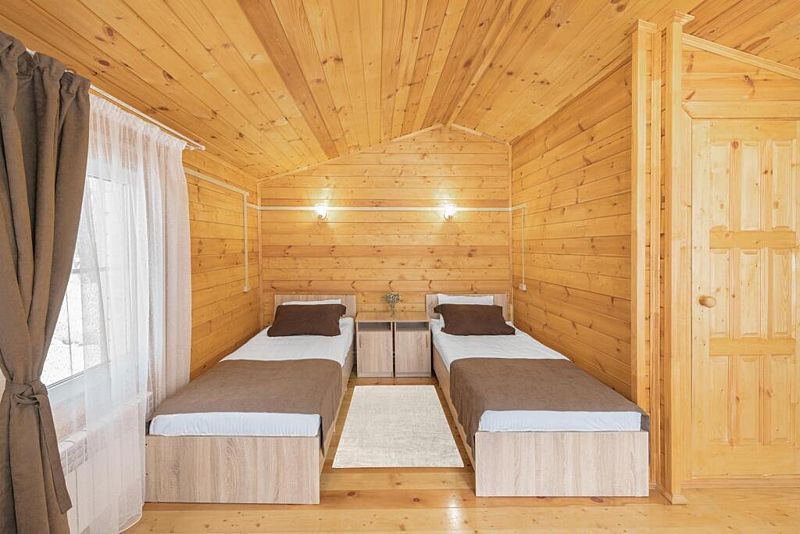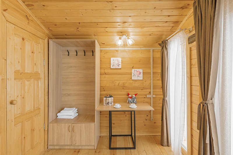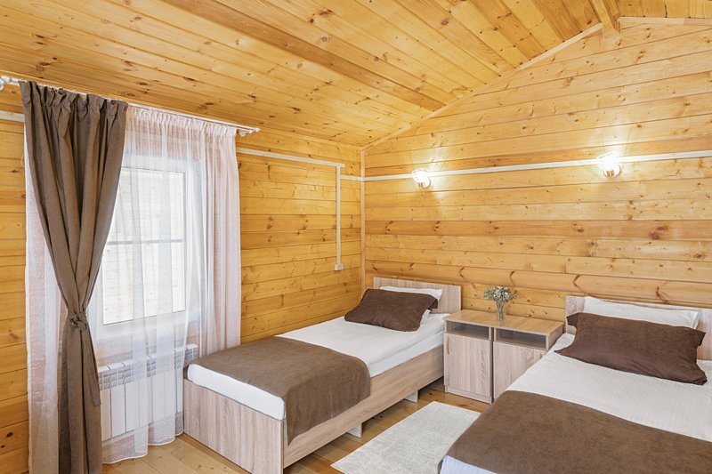 Уютный деревянный домик для двухместного размещения. Предусмотрено дабл- и твин-размещение с возможностью организации дополнительного места.