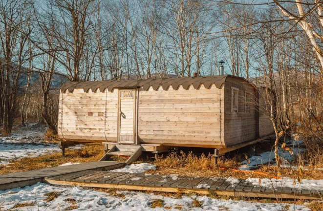 - Чан размещён в уединённой зоне, в окружении леса и свежего воздуха. Вечером – под звёздами. Утром – с видом на туманную Камчатку.