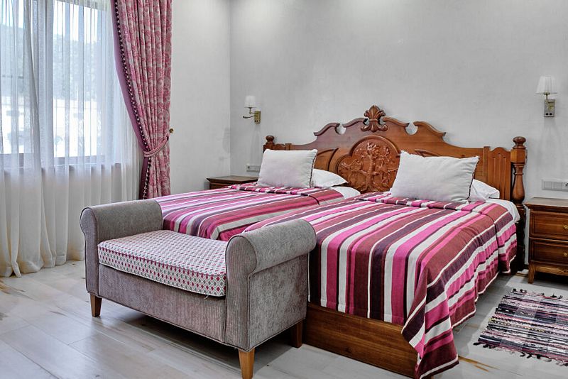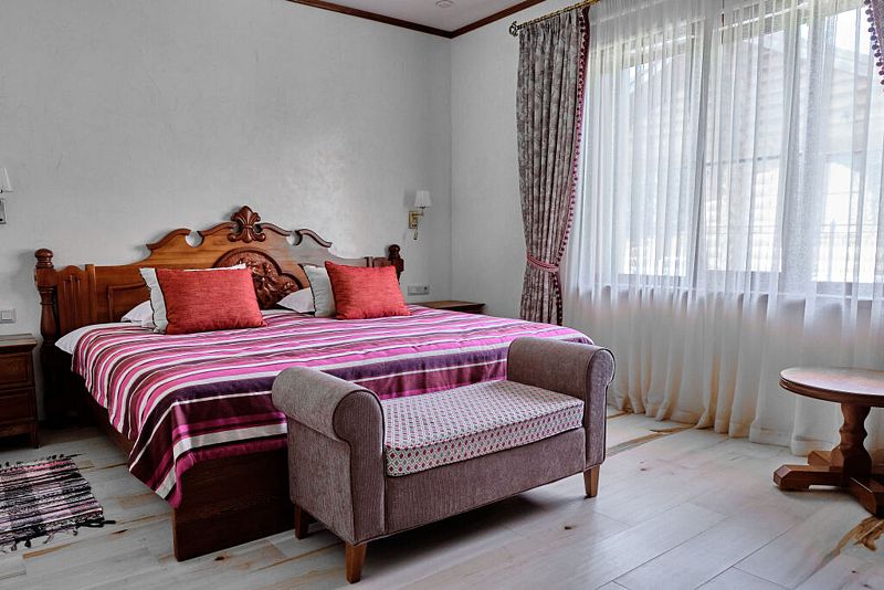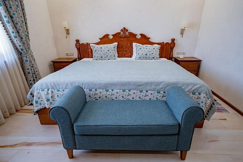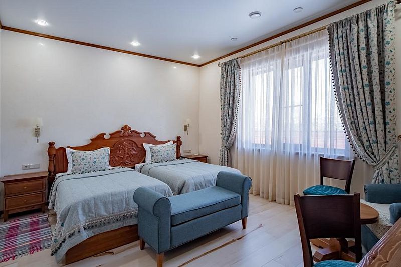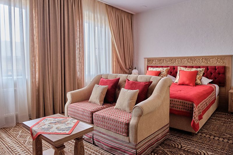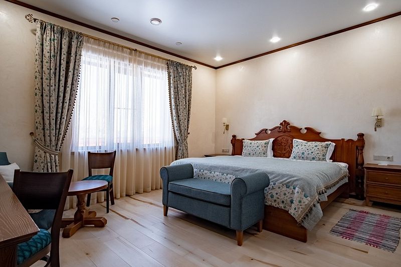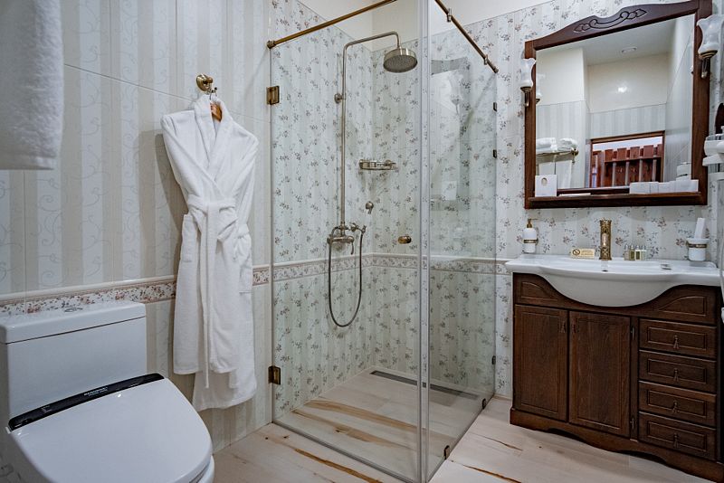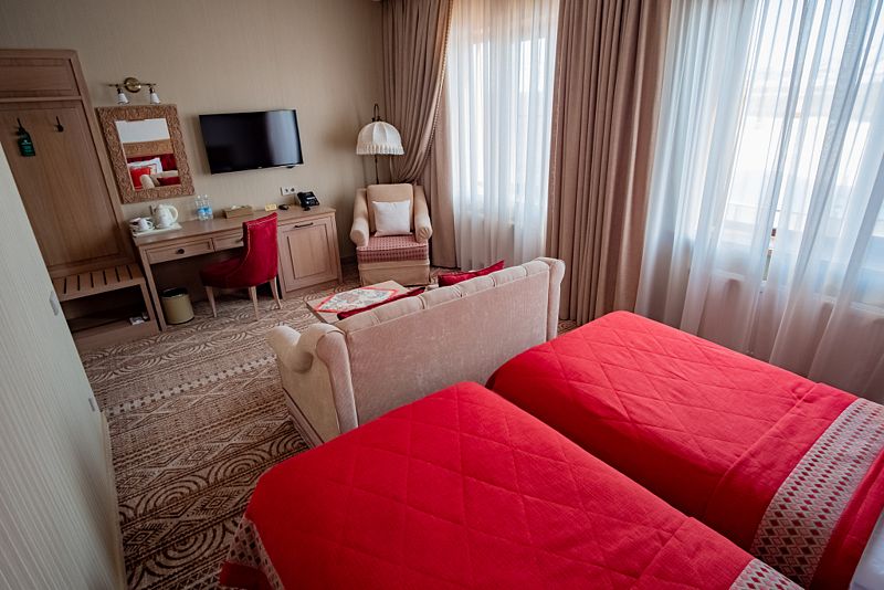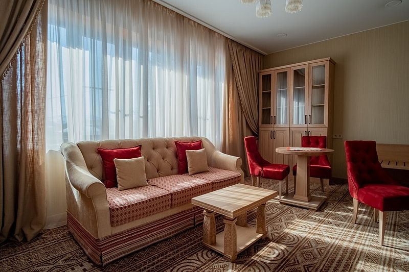 Номер уютно обставлен и оснащён необходимым, чтобы отдохнуть после долгого и насыщенного дня. Имеется халат. Оснащение зависит от выбранной категории номера.