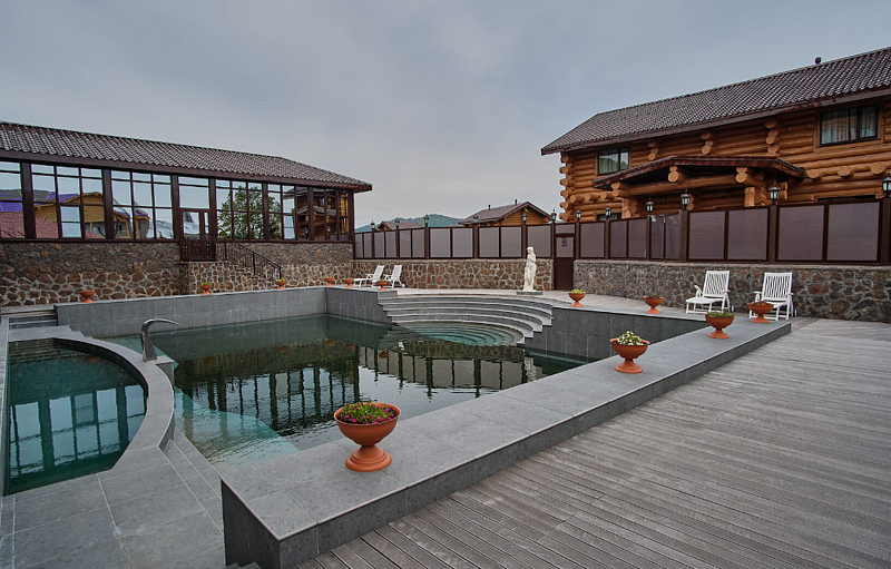 Тип бассейна: открытый бассейнВода в бассейне: бассейн с минеральной водойРядом с бассейном: шезлонги, полотенцаВремя работы: от 7:00 до 22:00Период работы: круглогодичноГРК «Тайны Камчатки» предлагает уникальную возможность насладиться термальным бассейном с гидромассажем и натуральной галькой. Это сочетание природных компонентов создает идеальные условия для отдыха и расслабления в любое время года. Термальная вода благотворно влияет на организм человека: множество минералов и микроэлементов в ее составе улучшают кровообращение, поддерживают здоровье кожи и нервной системы. Кроме того, термальная вода имеет антибактериальные свойства, что делает ее идеальным выбором для бассейна. Гидромассаж помогает расслабить мышцы, а натуральная галька, расположенная на дне бассейна, создает приятный массажный эффект.
