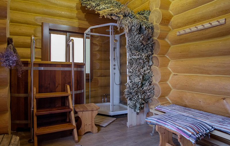 Инфраструктура: бассейн, купель, зона отдыха, полотенца, шапочки, душ, березовые веники, халатыСпециально оборудованный отдельно стоящий дом из нецилиндрованных бревен. Состоит из раздевалки, помывочной, парной и комнаты отдыха. В банный комплекс также входит купель и "сеновала" для отдыха. Всё это предназначено для принятия водных гигиенических и тепловых процедур с целью профилактики и оздоровления всего организма.