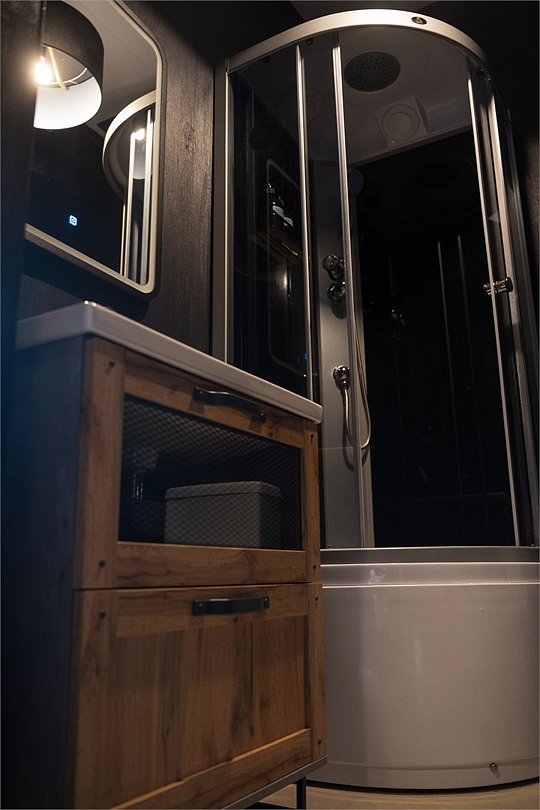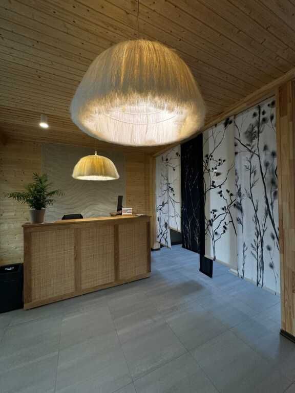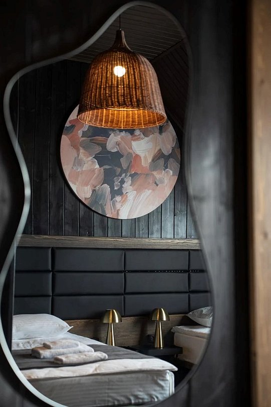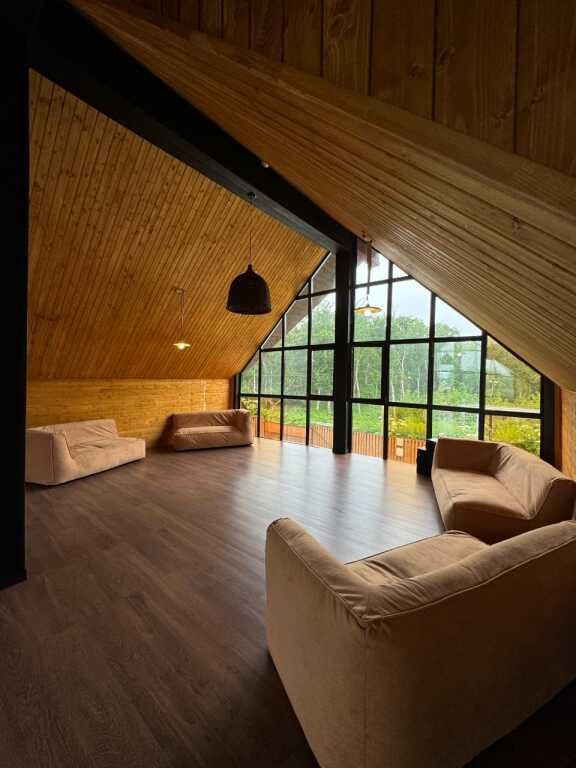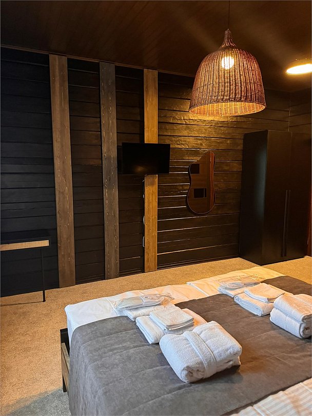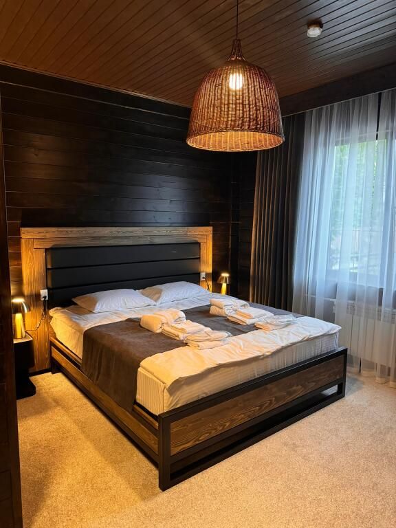 телевизор, светильник, настольные лампы, фен, душевая кабина, халаты, банные полотенца, тапочки, терраса, двуспальная кровать, шкаф для одежды, зеркало, раковина, кресло, стол, туалет, мини-холодильник, вид на лес, туалетные принадлежности премиум-класса, вешалки-плечики, затемняющая штораВ гостиничном номере