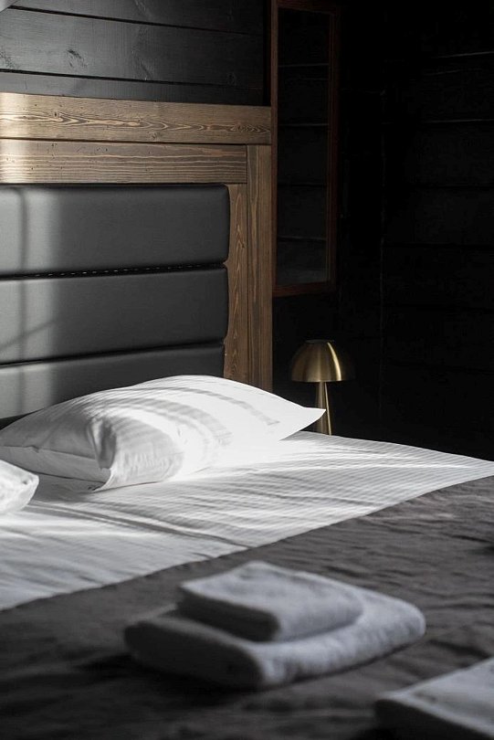 Комфортный номер с одной двуспальной кроватью. В номере имеются прикроватные тумбочки, столик, кресло, шкаф, мини-холодильник. Санузел расположен в номере, все гигиенические принадлежности предоставляются. Также предоставляются постельное белье и полотенца. Есть возможность дополнительного места.Услуги и удобства