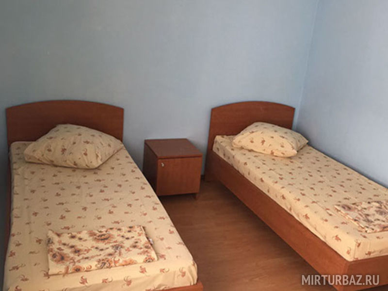 Номер с двумя односпальными кроватями, столом, 2 стульями.