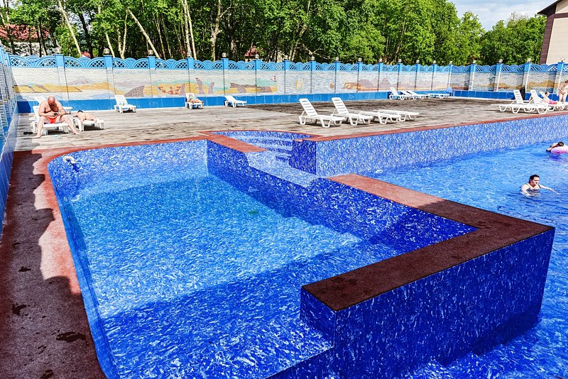 Читать полностьюБассейн находится в гостиничном комплексе «Лесная» на Камчатке.