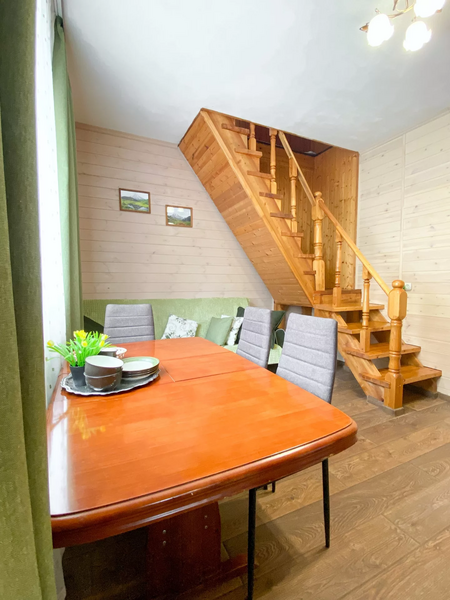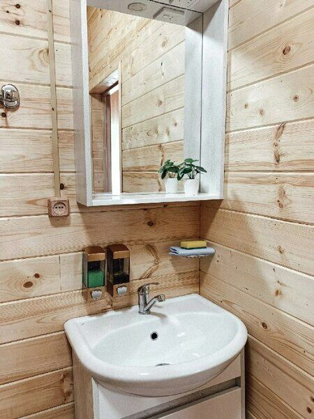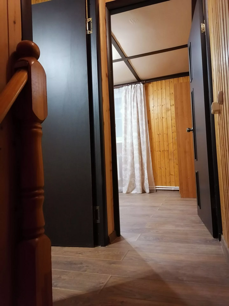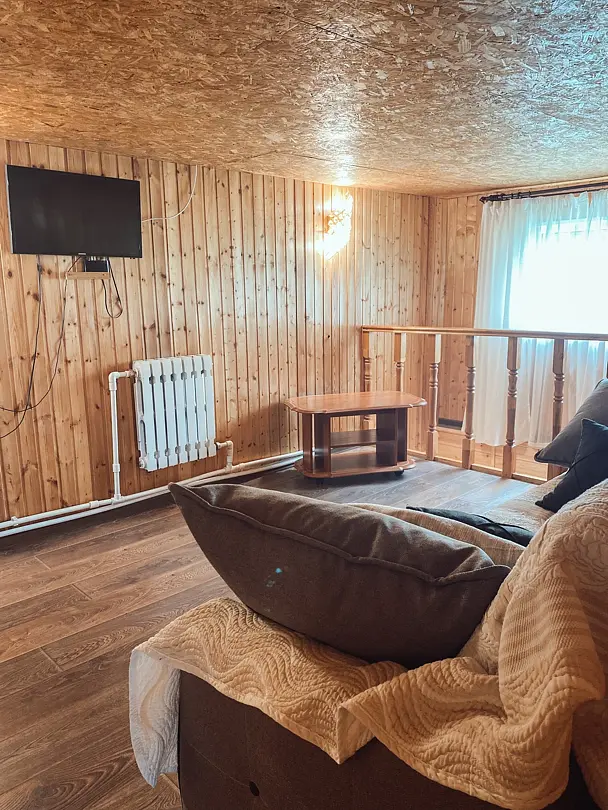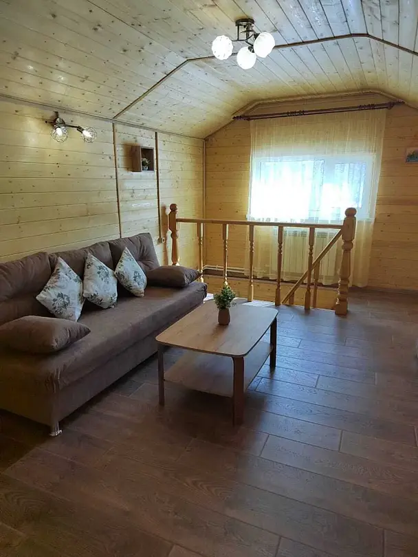 В доме также есть телевизор, вся необходимая бытовая техника для комфортного отдыха, просторный сан. узел напротив парилки и уютная зона отдыха на втором этаже.