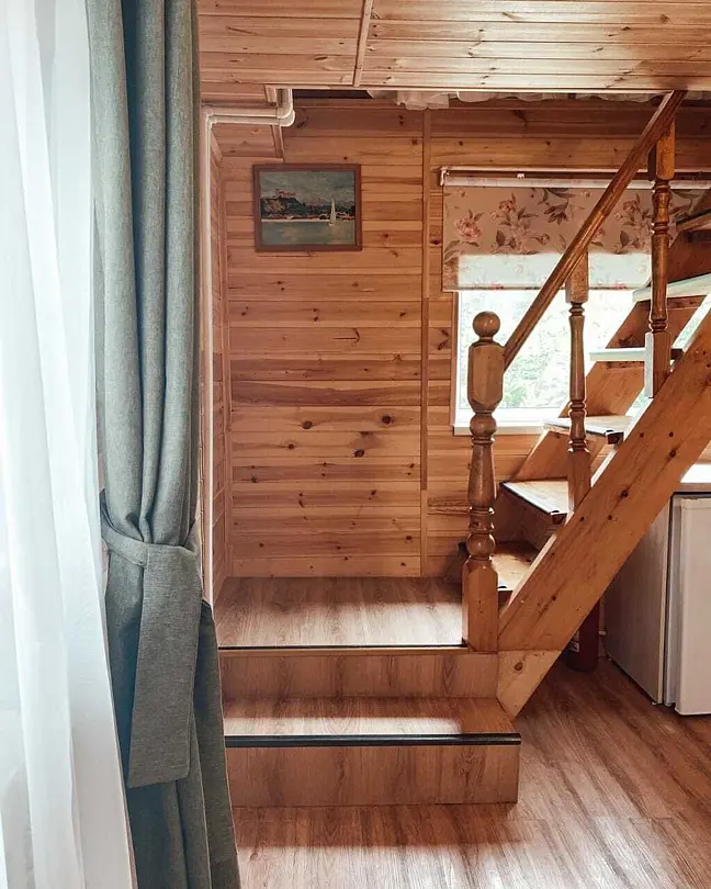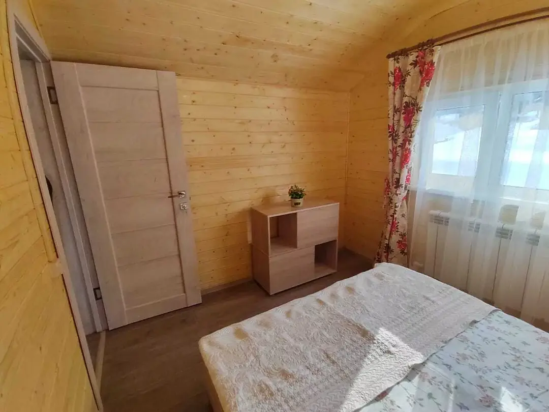 На втором этаже находятся 2 отдельные комнаты, большой шкаф. В каждой комнате имеется 2х-спальная кровать 160x200, оснащенная комплектом постельных принадлежностей, подушками из лебяжьего пуха.