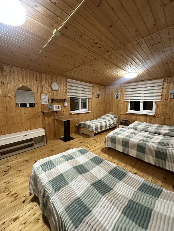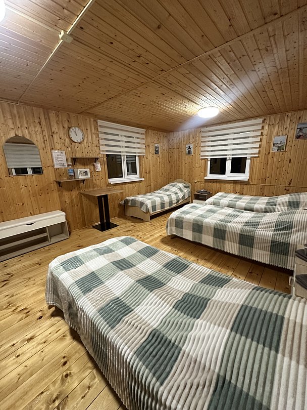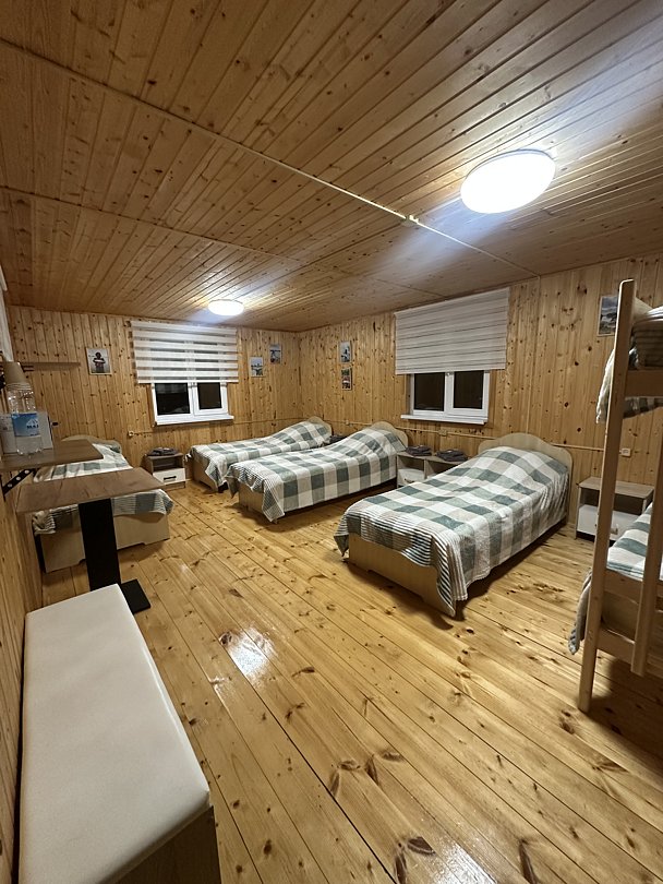 На базе одновременно могут разместиться до шестнадцати гостей, предлагаются несколько вариантов размещения, включая два четырёхместных номера с полутораспальными кроватями и двухместные номера со всем необходимым для комфортного проживания. Каждому гостю предоставляется гигиенический набор, а в домиках имеется отопление. Удобства включают кухню, столовую и мангал на территории.