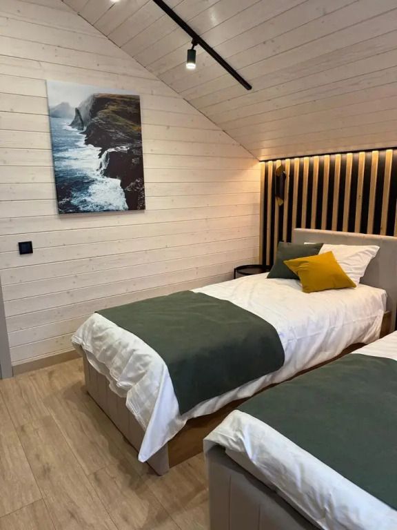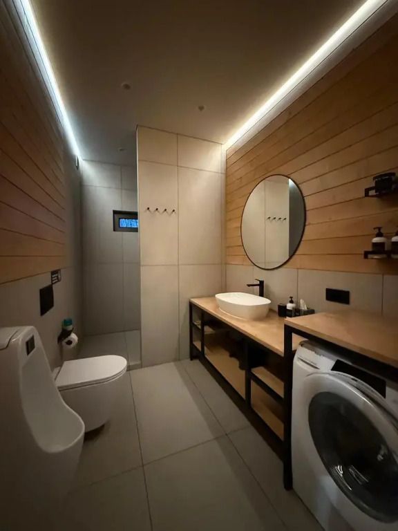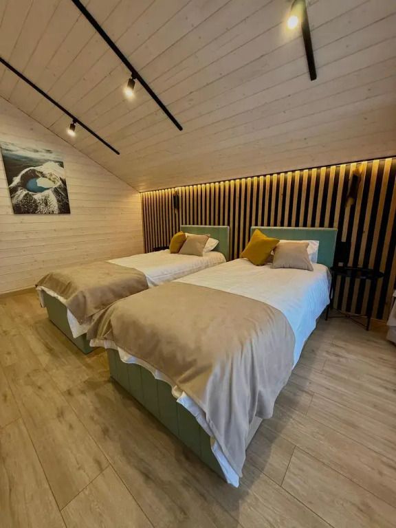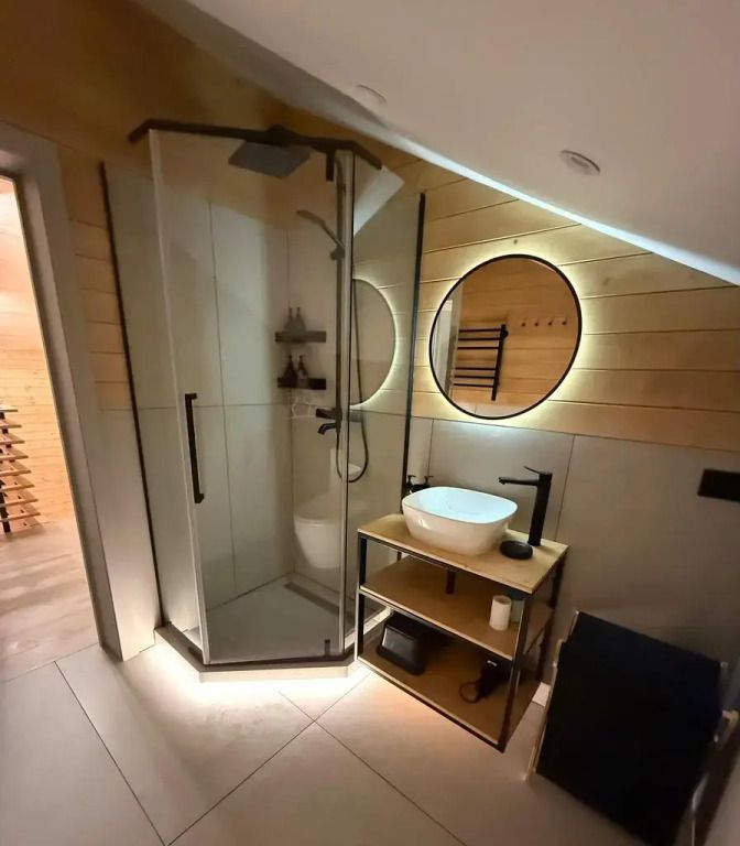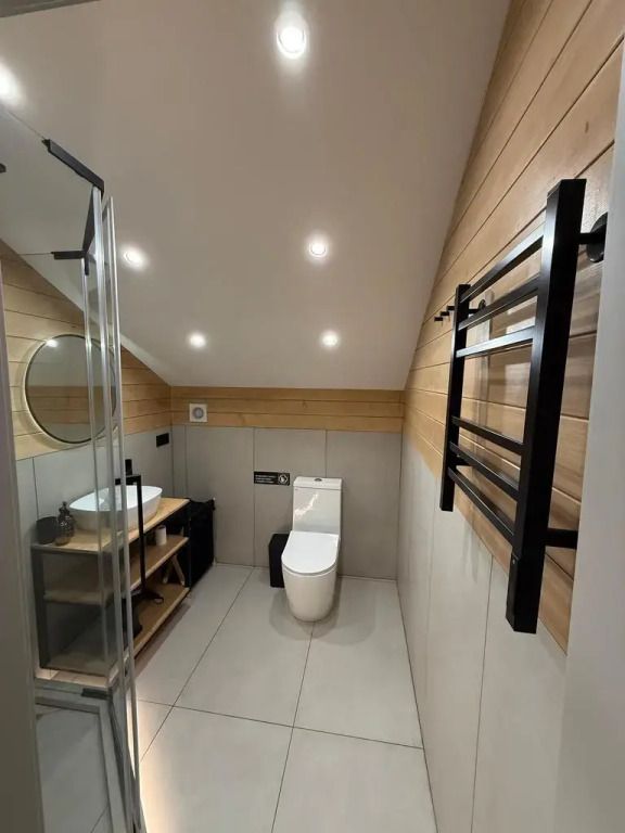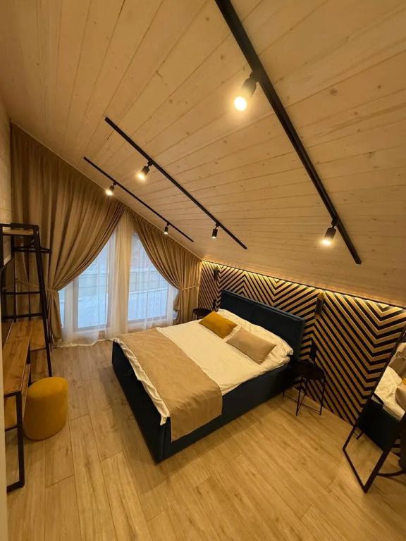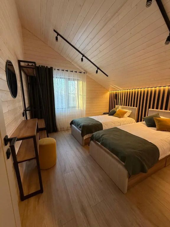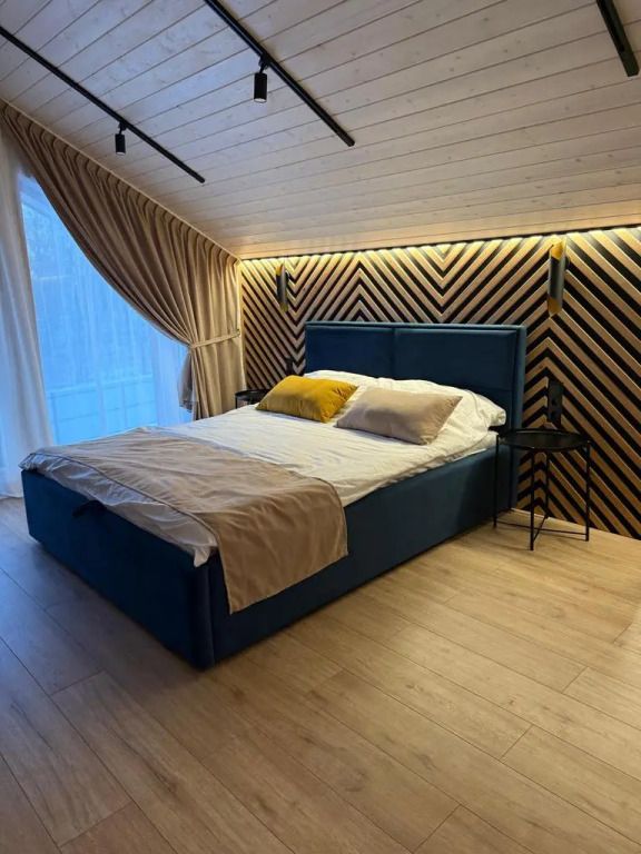 Площадь дома составляет 150 кв.м, он оборудован панорамными окнами и террасой. Дом находится на участке площадью 2000 кв.м на закрытой территории. На территории имеется банный чан и мангал-барбекю на углях. Возможно размещение до 10 гостей в отдельных спальнях, также предусмотрены дополнительные спальные места в гостиной на диване для двух человек.