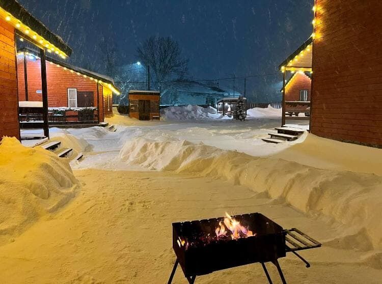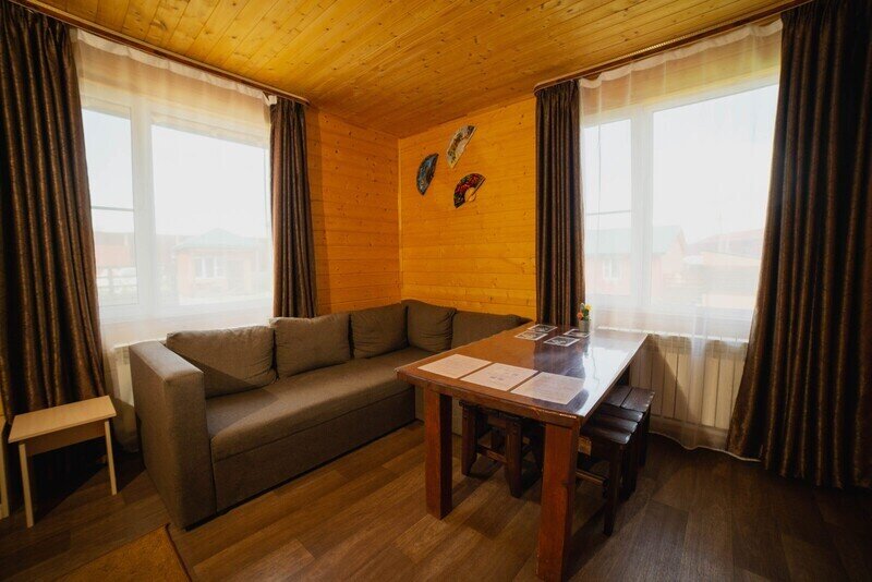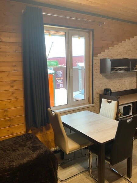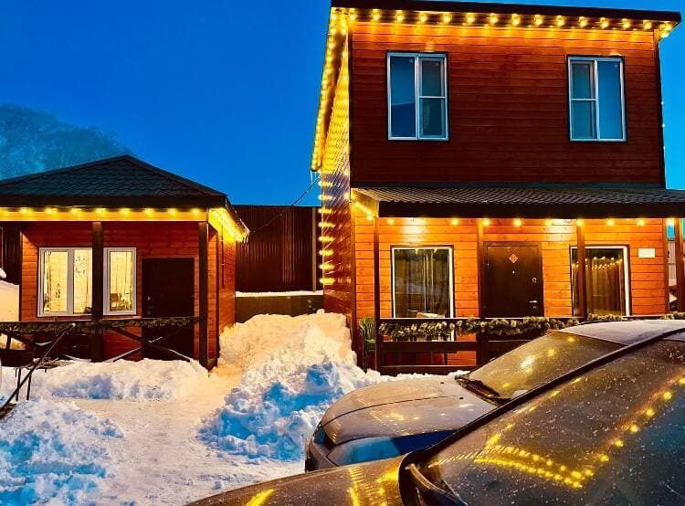 Отдых с друзьямиДостоинстваСпокойное комфортное уютное место подходит для отдыха семьей и с друзьями, снимали 6 местное шале- с 18 на 19 января,места очень много, в домике много места и есть все необходимое, чисто, тепло.👍бассейн отличный, вода очень комфортная, на территории горка и тюбинги детям было весело👍