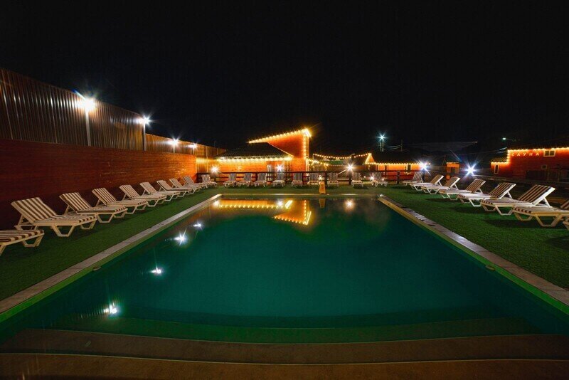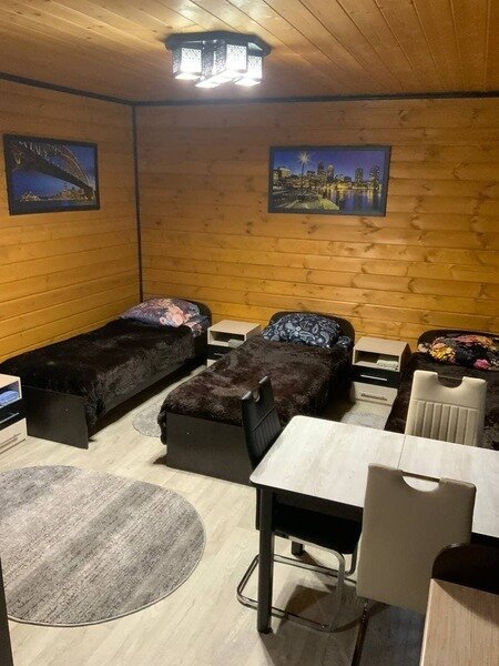 3-х комнатное Шале с общим залом и отдельным входом рядом с общим бассейном под открытым небом хорошо подходит для командировочных, туристов, одной большой семьи или нескольких семей. Шале укомплектовано большим ЖК телевизор мини-кухня, набор посуды, чайник и холодильник. Имеется бесплатный WiFi. Шале имеет свой отдельный дворик с зоной барбекю и уличной мебелью. В этой категории проживания имеется ЖК телевизорjv, мини-кухня, холодильник, микроволновая печь, чайник, минимальный набор посуды, свой раздельный санузел. Есть бесплатный WiFi. Эта категория проживания имеет 6 односпальных кроватей в 3 комнатах и один 2-спальный диван в общем зале.