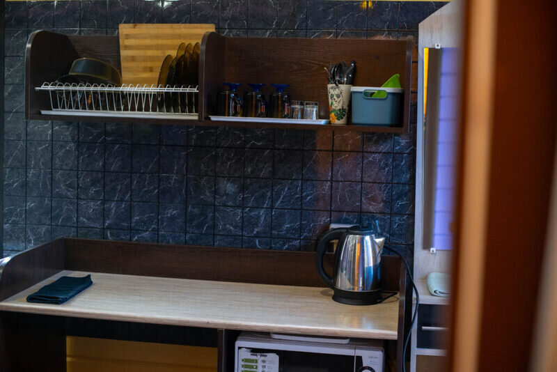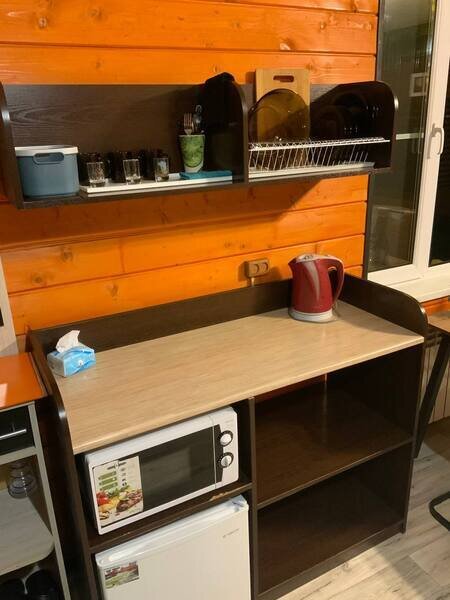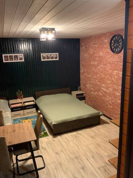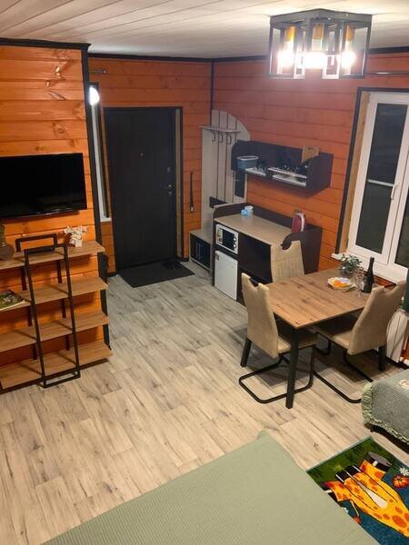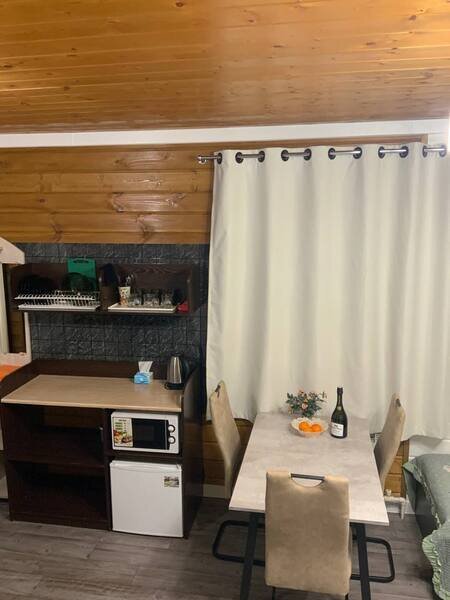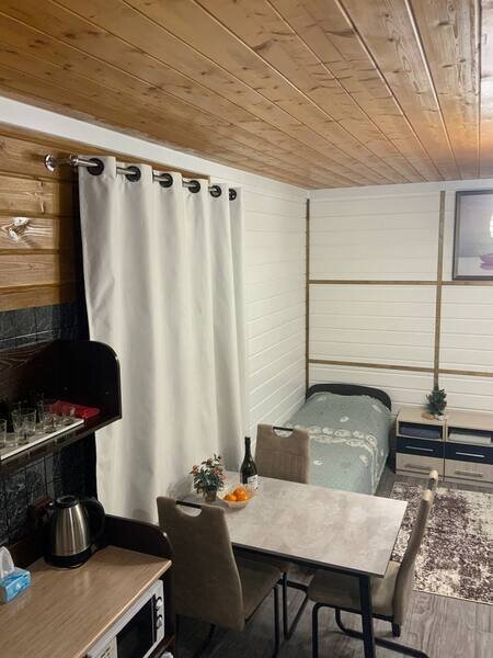Номер-студия в коттедже на 2-х хозяев с отдельным входом и личной террасой с уличной мебелью. Номер имеет свой отдельный дворик с зоной барбекю и крытой беседкой, а также свой персональный круглосуточный бассейн, оплачиваемый дополнительно и работающий с 1 мая по 1 октябрь. В номере имеется ЖК телевизор, мини-кухня, холодильник, микроволновая печь, чайник, минимальный набор посуды, свой совмещенный санузел. Есть бесплатный WiFi.