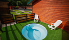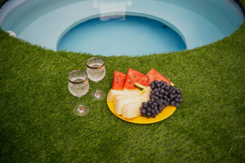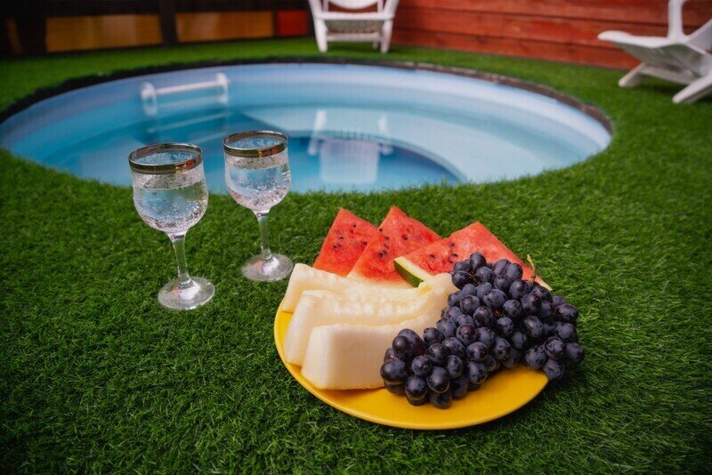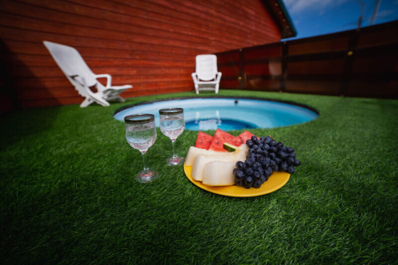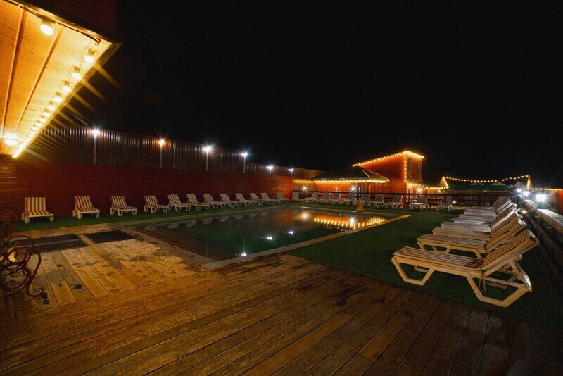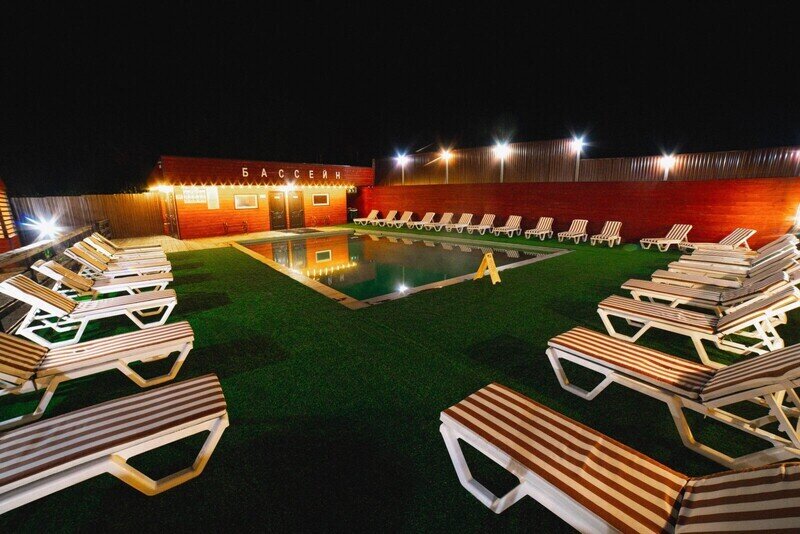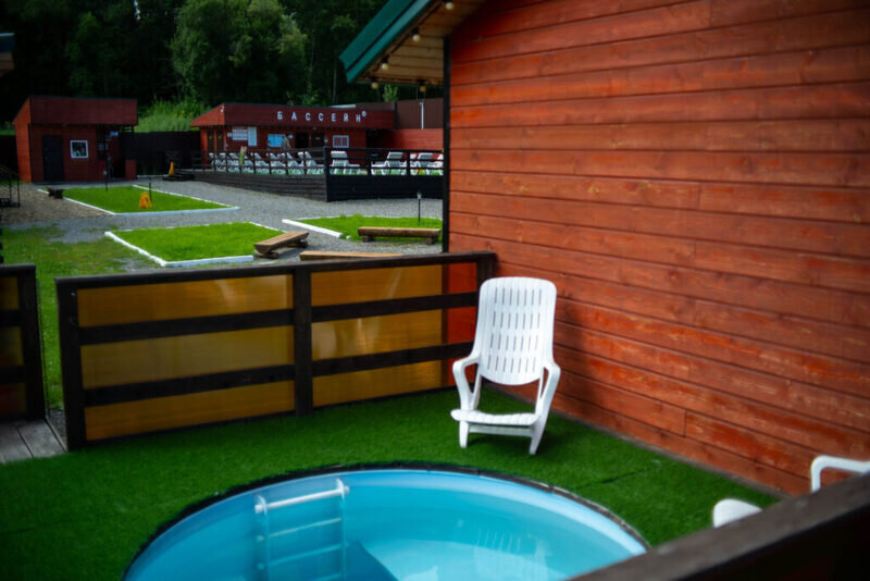 Территория базы отдыха утопает в зелени и оборудована всем необходимым для отдыха и развлечений. Здесь есть бассейн, терраса для загара и купальня на открытом воздухе. Также имеются зоны барбекю с мангалом, где гости могут приготовить свои любимые блюда.