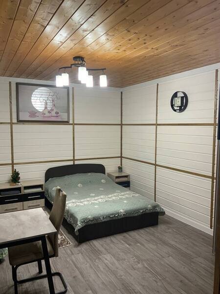 Номер-студия в коттедже на 2-х хозяев с отдельным входом и личной террасой с уличной мебелью. Номер имеет свой отдельный дворик с зоной барбекю и крытой беседкой, а также свой персональный круглосуточный бассейн, оплачиваемый дополнительно и работающий с 1 мая по 1 октябрь. В номере имеется ЖК телевизор, миникухня, холодильник, микроволновая печь, чайник, минимальный набор посуды, свой совмещенный санузел. Есть бесплатный WiFi. Эта категория проживания имеет 2-х спальную и 1-спальную кровати.