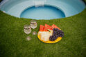 Номер-студия в коттедже на 2-х хозяев с отдельным входом и личной террасой с уличной мебелью. Номер имеет свой отдельный дворик, с зоной барбекю и крытой беседкой, а также свой персональный круглосуточный бассейн, оплачиваемый дополнительно и работающий с 1 мая по 1 октябрь. В номере имеется ЖК телевизор, мини-кухня, холодильник, микроволновая печь, чайник, минимальный набор посуды, свой совмещенный санузел. Есть бесплатный WiFi. Эта категория проживания имеет 2-х спальную и 1-спальную кровати.
