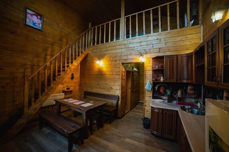 Подходит для молодежных компаний, больших семей, дней рождения, девичников, тематических вечеринок. Двухэтажный отдельностоящий дом со своей террасой, зоной барбекю и беседкой. Дом укомплектован небольшой кухонной зоной, холодильником, чайником, микроволновой печью и набором посуды. На первом этаже расположен холл, санузел, второй этаж занимают спальни.