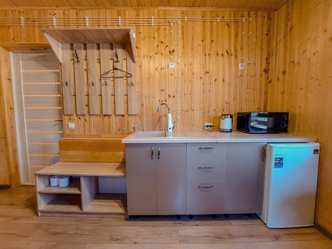 Для проживания гостей предлагаются комфортабельные эко-домики с видом на величественные горы, оборудованные всем необходимым для полноценного отдыха. В каждом доме имеется кухня, оснащенная бытовой техникой и набором посуды, современный санузел с душем и ванными принадлежностями, индивидуальная система отопления, обеспечивающая комфорт в любое время года, телевизор. Качественный Wi-Fi доступен на всей территории для вашего удобства.