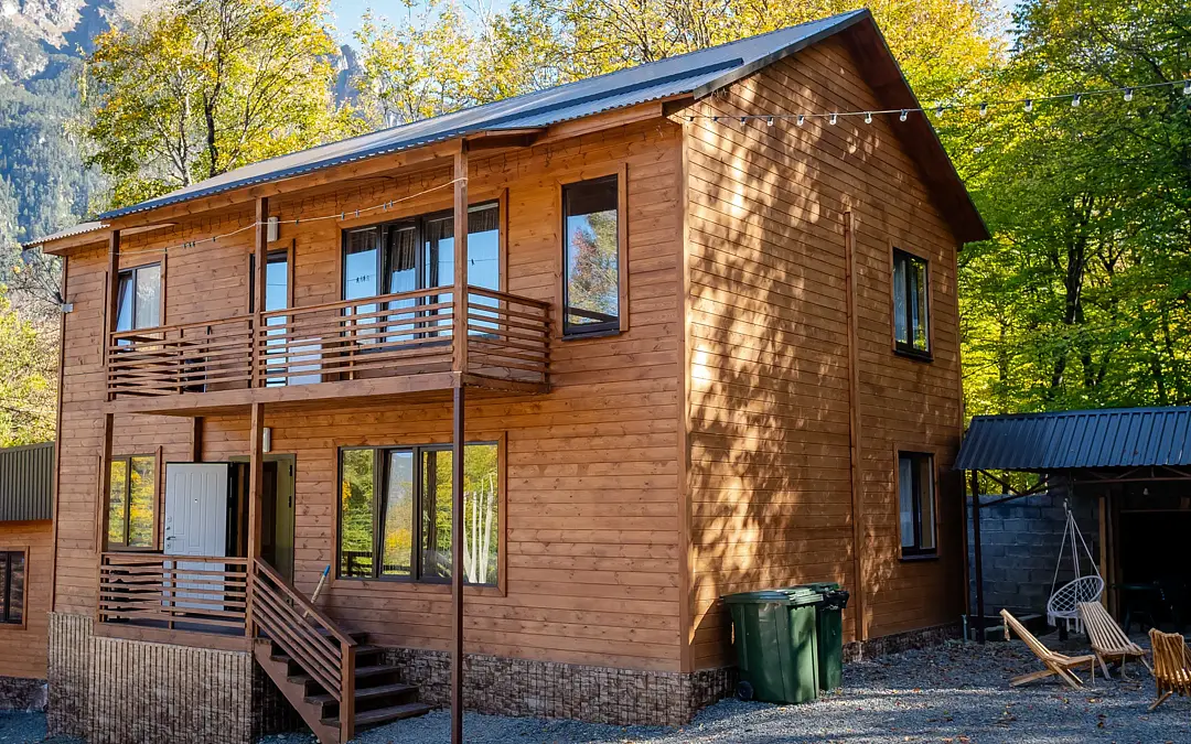 Номера в двухэтажном Деревянном доме с видом на горы.