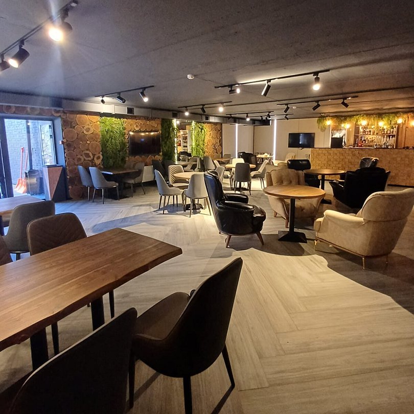 Бар удобно расположен на нулевом этаже здания, площадью 110 м², с возможностью одновременной посадки до 45 человек. Вход в бар предусмотрен как с улицы, так и с гостиницы.