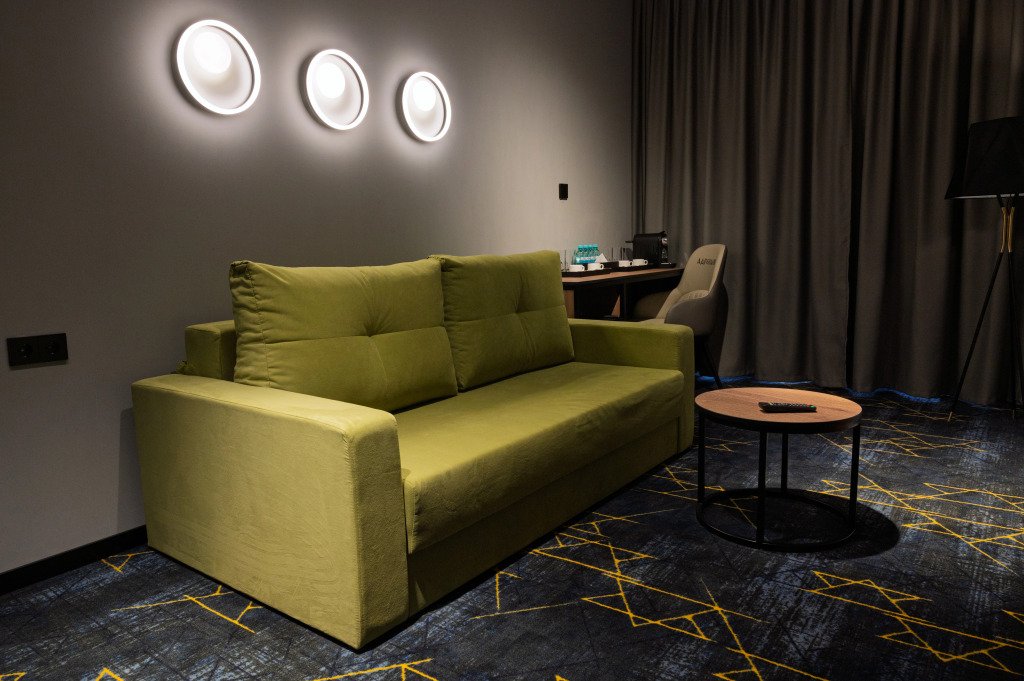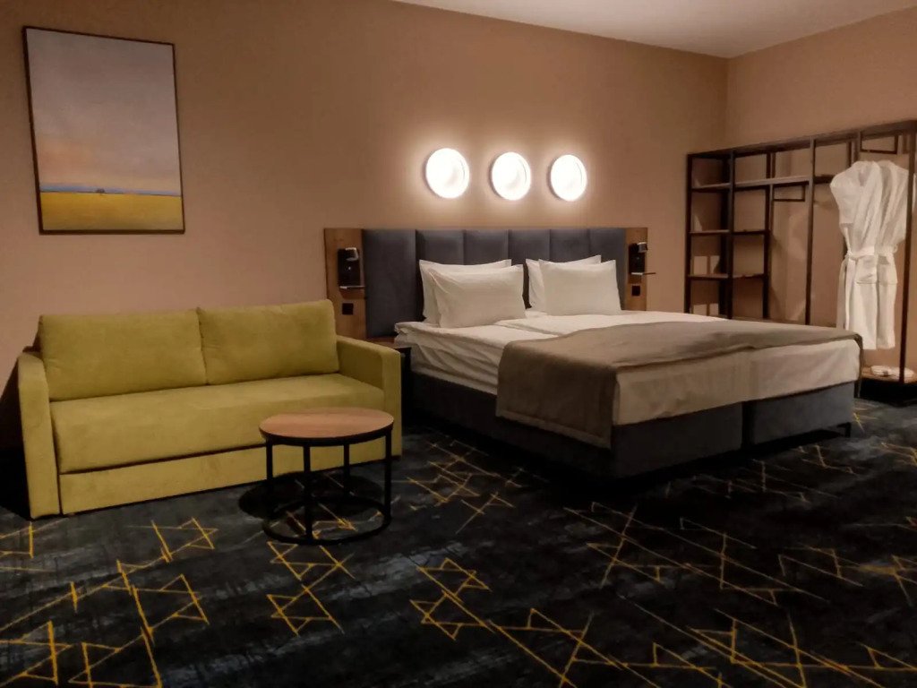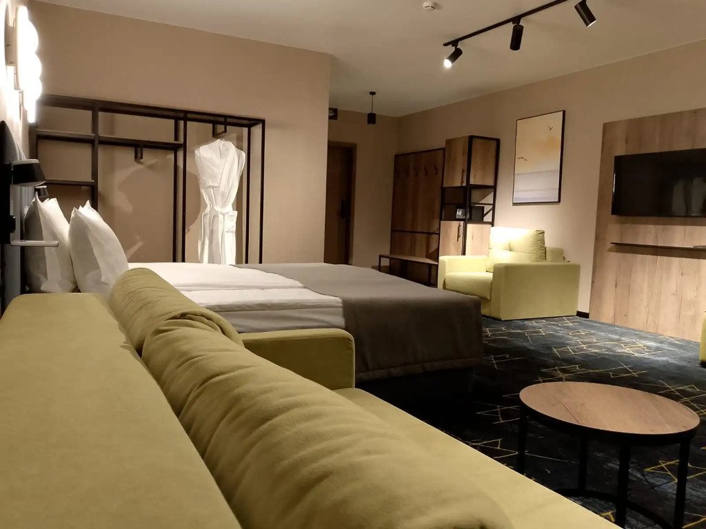 с/у, тв, кофемашина, минибар, сейф, двуспальная кровать, двуспальный диван, кресло кровать