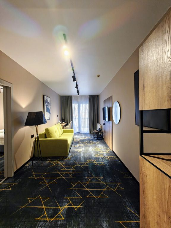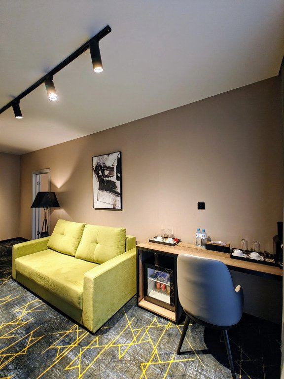с/у, тв, кофемашина, минибар, сейф, двуспальная кровать, двуспальный диван