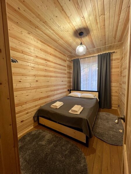 Вместительный коттедж на шесть человек оснащен тремя спальнями, ванной комнатой, кухней и гостиной. Для комфорта гостям предоставляется постельное белье, набор полотенец, гигиенические средства, имеется камин, телевизор, Wi-Fi.