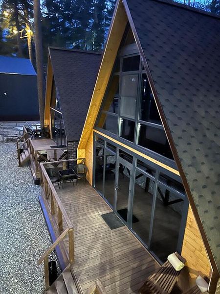 Комфортабельный дом в стиле A-frame общей вместимостью до 6 человек. Идеальный вариант для дружной компании или семьи.