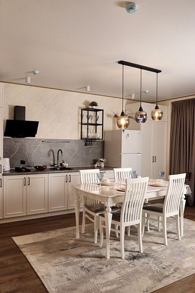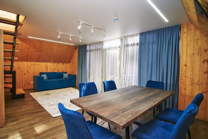 Привлекательный треугольный дом с просторными комнатами, идеально подходящий для большой семьи или компании друзей. Весь дом оборудован теплыми полами, чтобы гости всегда чувствовали себя комфортно. Внутри вы найдете стильную и качественную дизайнерскую мебель.