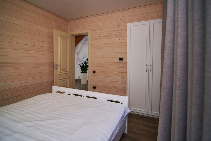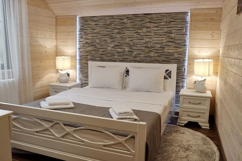 На первом и втором этаже расположены две спальни с двуспальными кроватями.