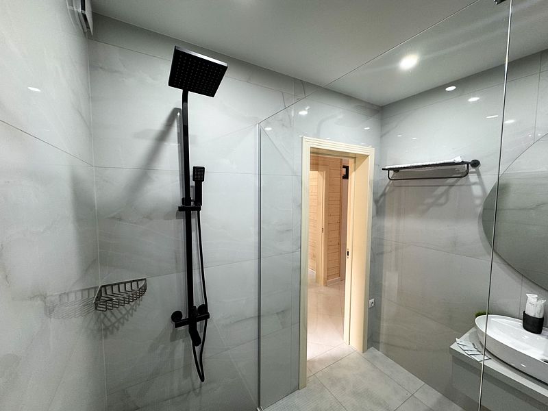 В каждом из двух санузлов имеются туалет, душ и раковина.