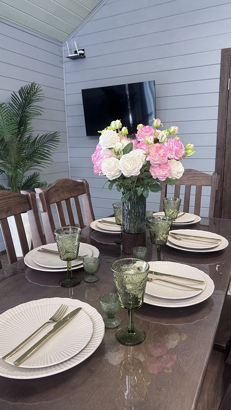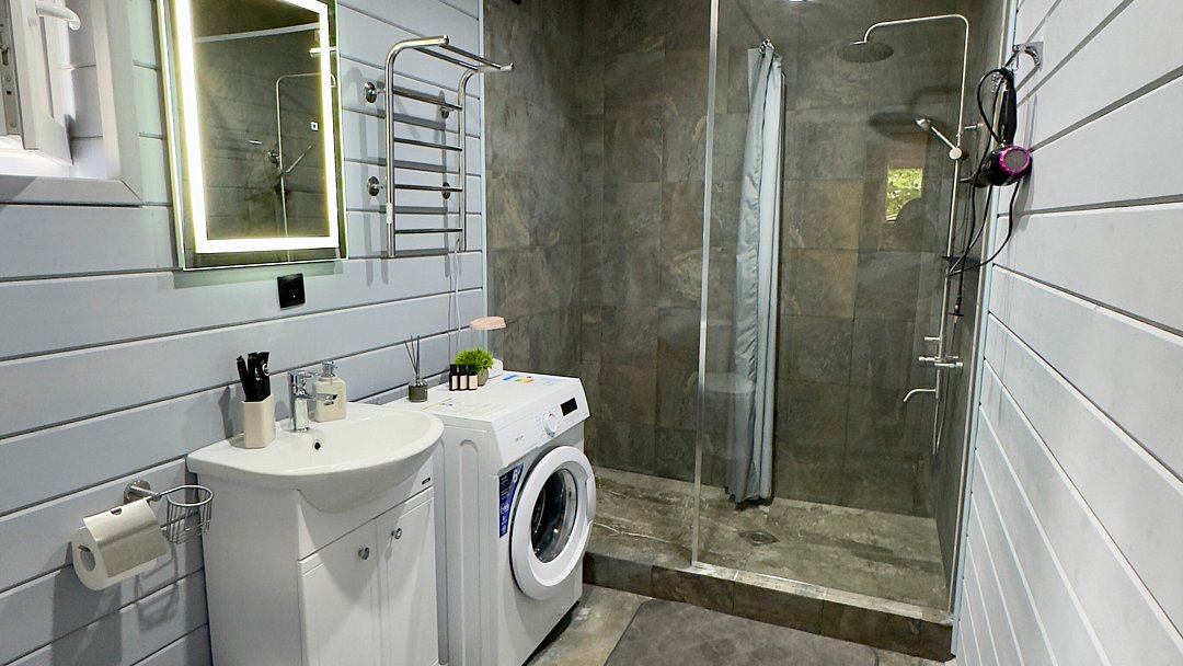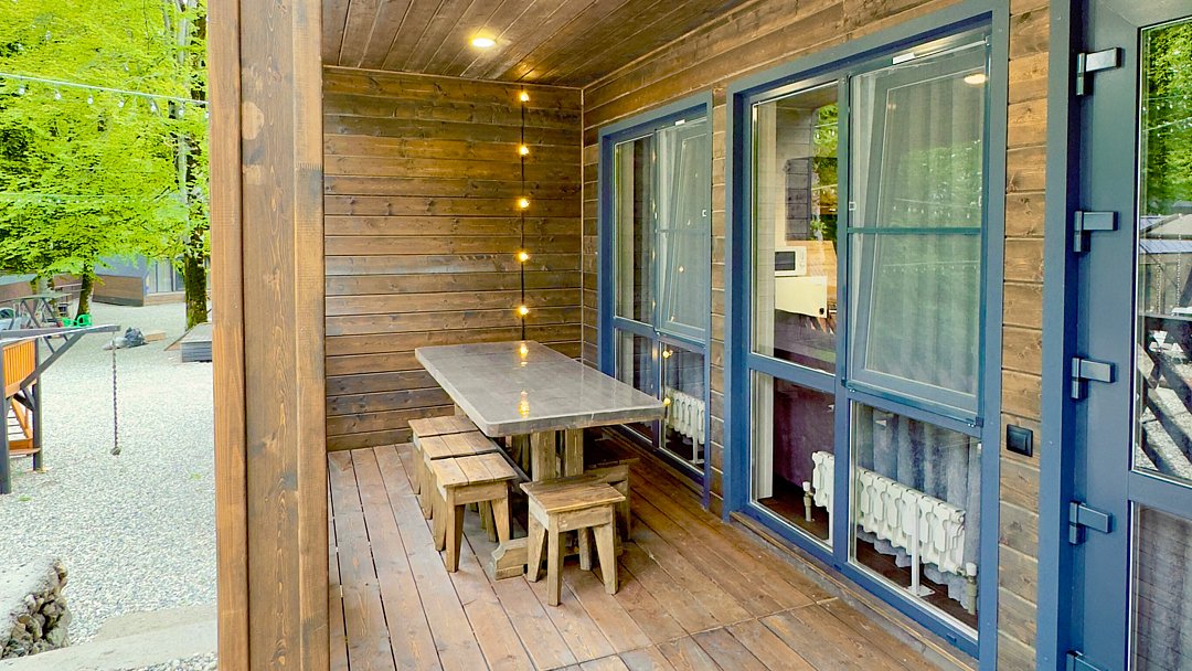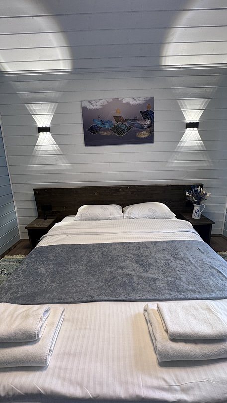 Стильные барнхаусы и домик А-фрейм полностью оснащены всем необходимым для отличного отдыха. В каждом доме есть кухня, оборудованная бытовой техникой и набором посуды, телевизор и Wi-Fi, удобные спальные места и чистое постельное белье, современный санузел с душем и гигиеническими принадлежностями.