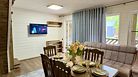 - кухня-гостиная: кухонный гарнитур, чайник, холодильник, микроволновая печь, плита, посуда, стол, стулья, двуспальный диван, телевизор;