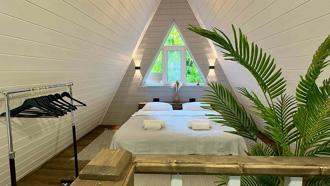 Двухэтажный А-фрейм (76 м²) до 4 человек.