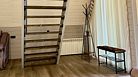 - кухня-гостиная: кухонный гарнитур, чайник, холодильник, микроволновая печь, плита, посуда, стол, стулья, двуспальный диван, телевизор, совмещённый санузел;