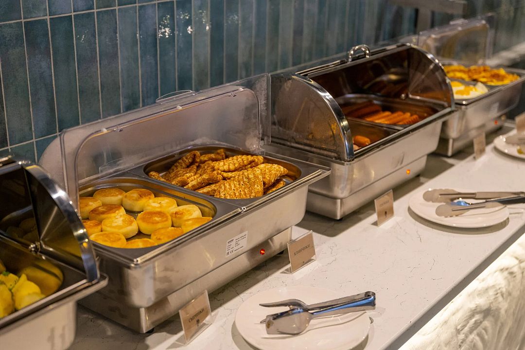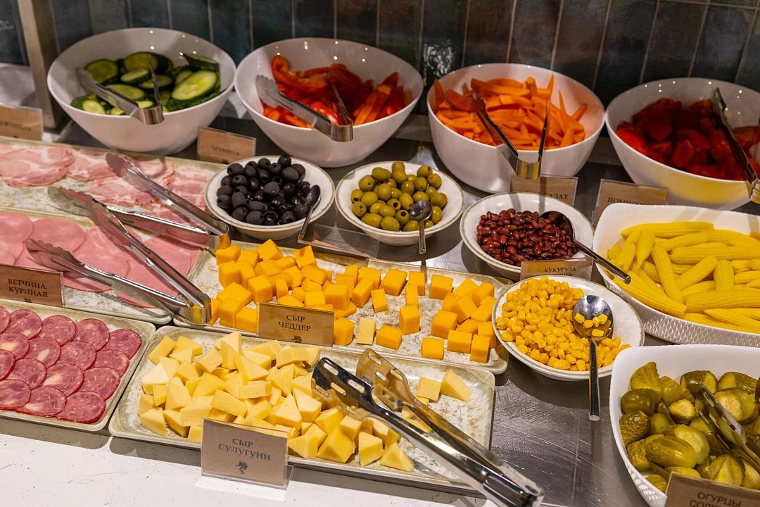 Гостей ждет богатый выбор блюд на любой вкус: от свежих овощей, йогуртов и мюсли до ароматной выпечки, молочных и кисломолочных напитков. По индивидуальному заказу блюда из яиц, а так же сосиски, каши и запеченные овощи.