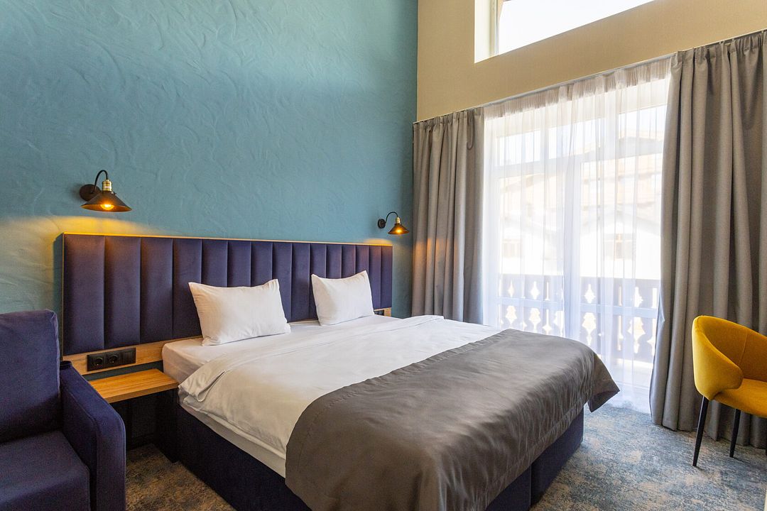 Два комфортабельных жилых корпуса состоят из 133 номеров разной вместимости — от стандартов до больших двухкомнатных сьютов (35 м2). Во всех номерах есть мини-холодильник, чайная станция, ЖК-телевизор, сплит-система, сейф для особо ценных вещей, фен, гладильная доска и утюг.