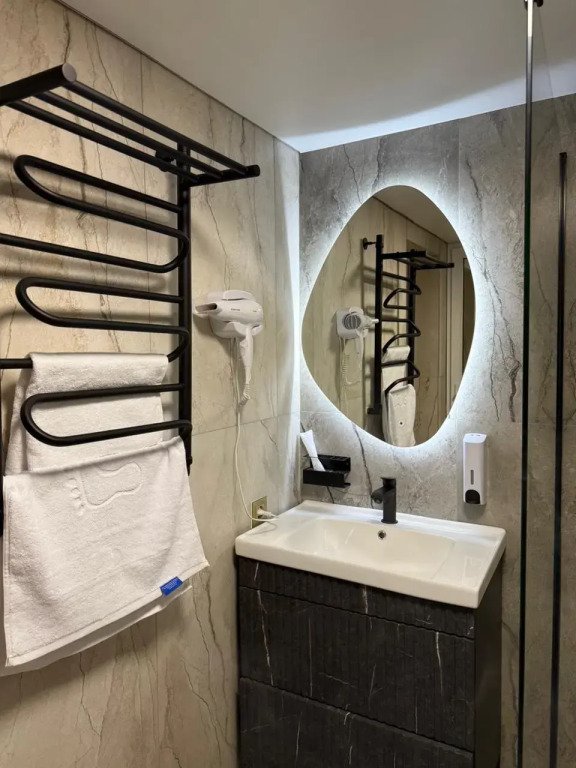Номер уютно обставлен и оснащён необходимым, чтобы отдохнуть после долгого и насыщенного дня. Имеется телевизор. Оснащение зависит от выбранной категории номера.