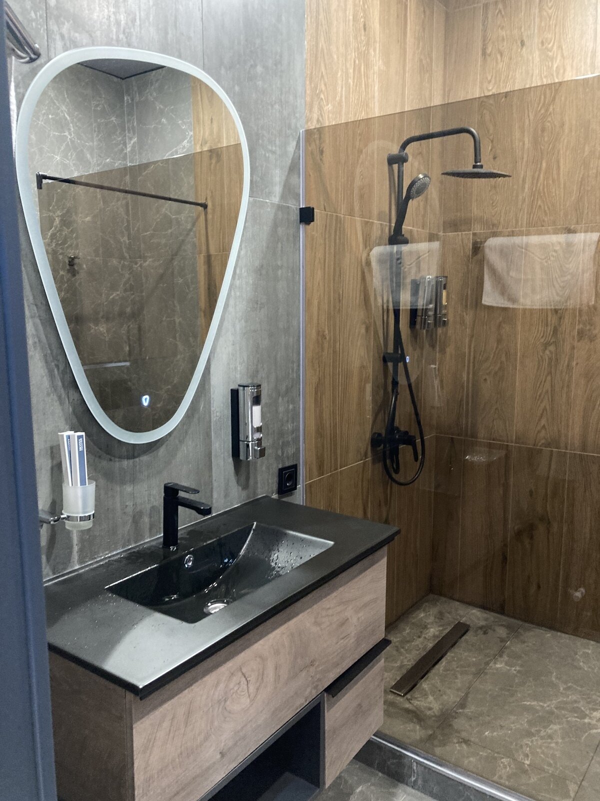 В каждом номере: одна большая кровать, диван (раскладывающийся), ванная комната с душевой кабиной, рабочее место(стол), журнальный столик, звуконепроницаемые окна, интернет, телевизор с плоским экраном, мини бар, приборы для приготовления чая или кофе, электрический чайник.