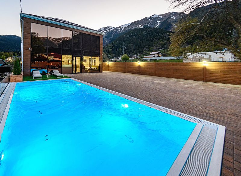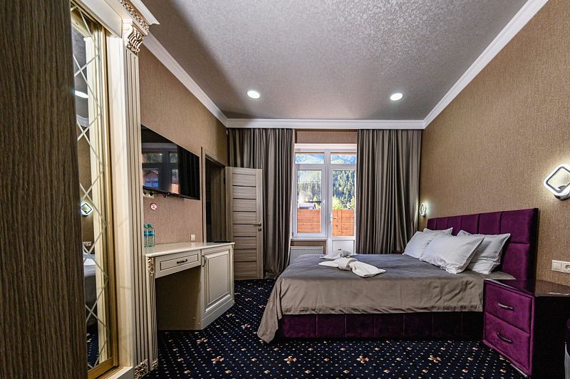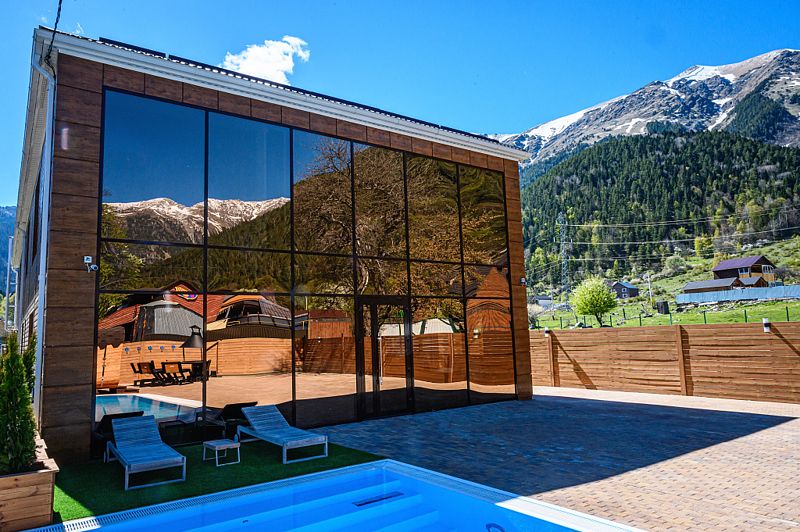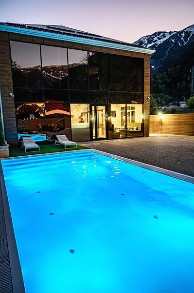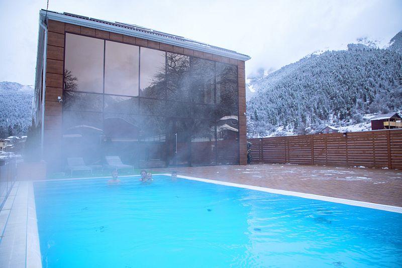 Отель работает по системе «Всё включено» и идеально подойдёт для проведения семинаров, корпоративных тренингов и незабываемых торжеств в атмосфере утонченного комфорта и захватывающего вида гор.